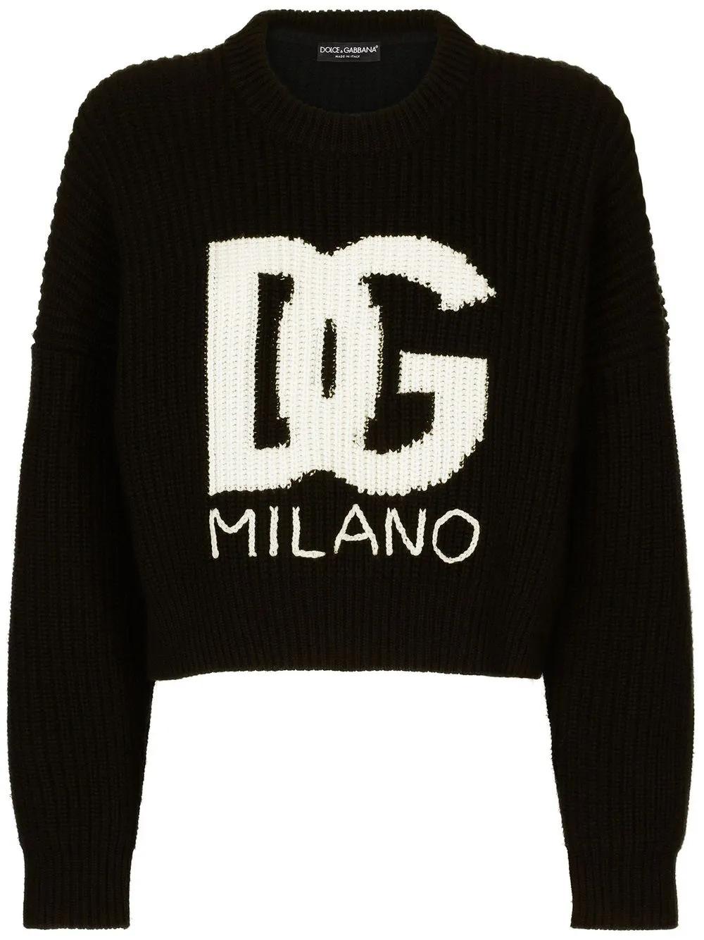 Dolce & Gabbana DG-logo fisherman's-knit jumper - Black