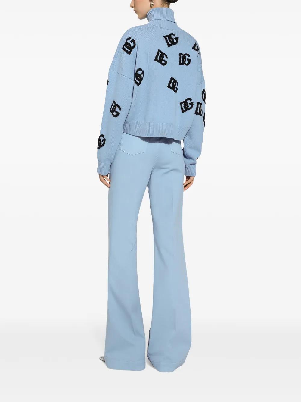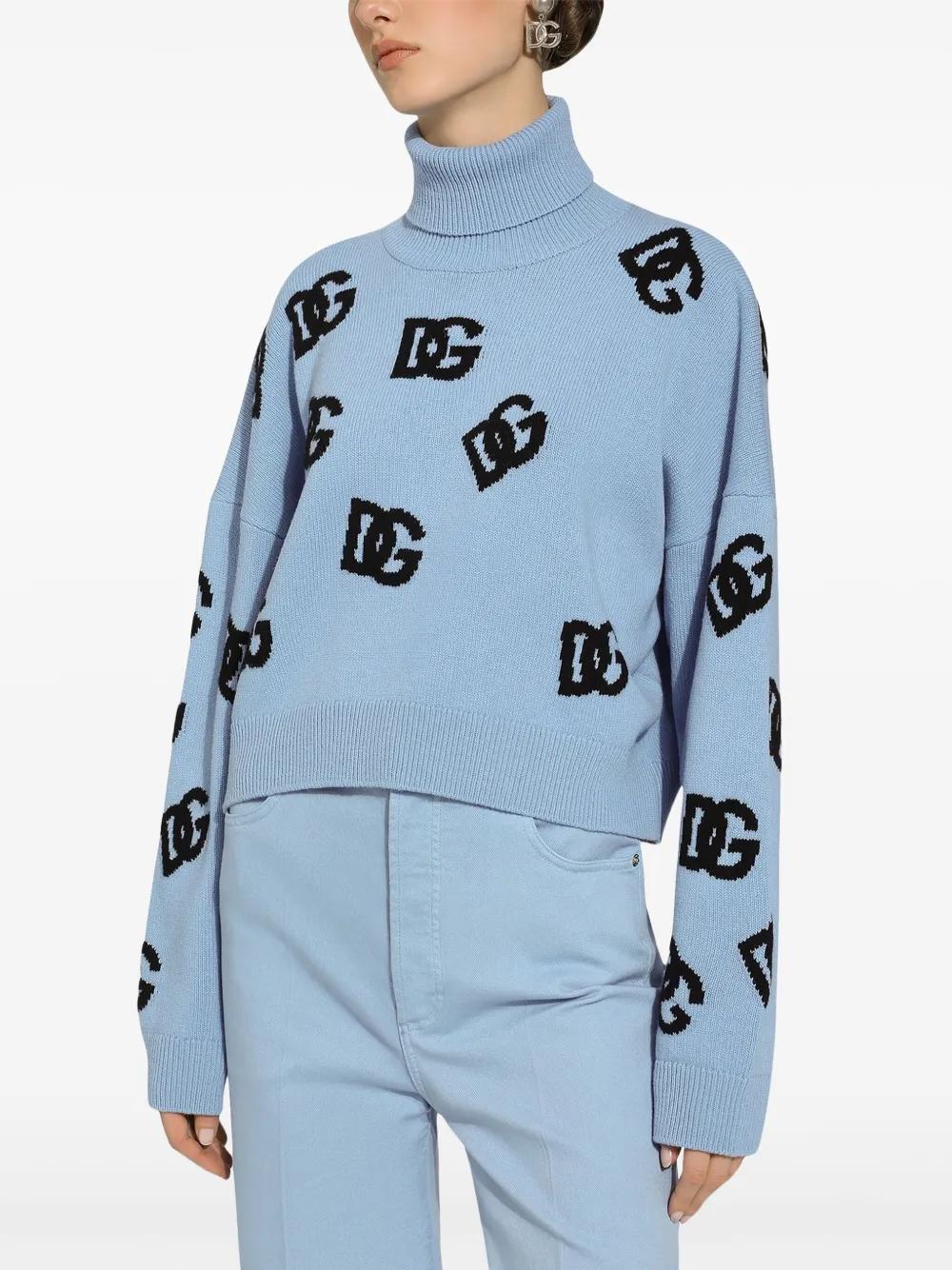 blue virgin wool ribbed knit high neck all-over logo embroidery ribbed cuffs and hem long sleeves