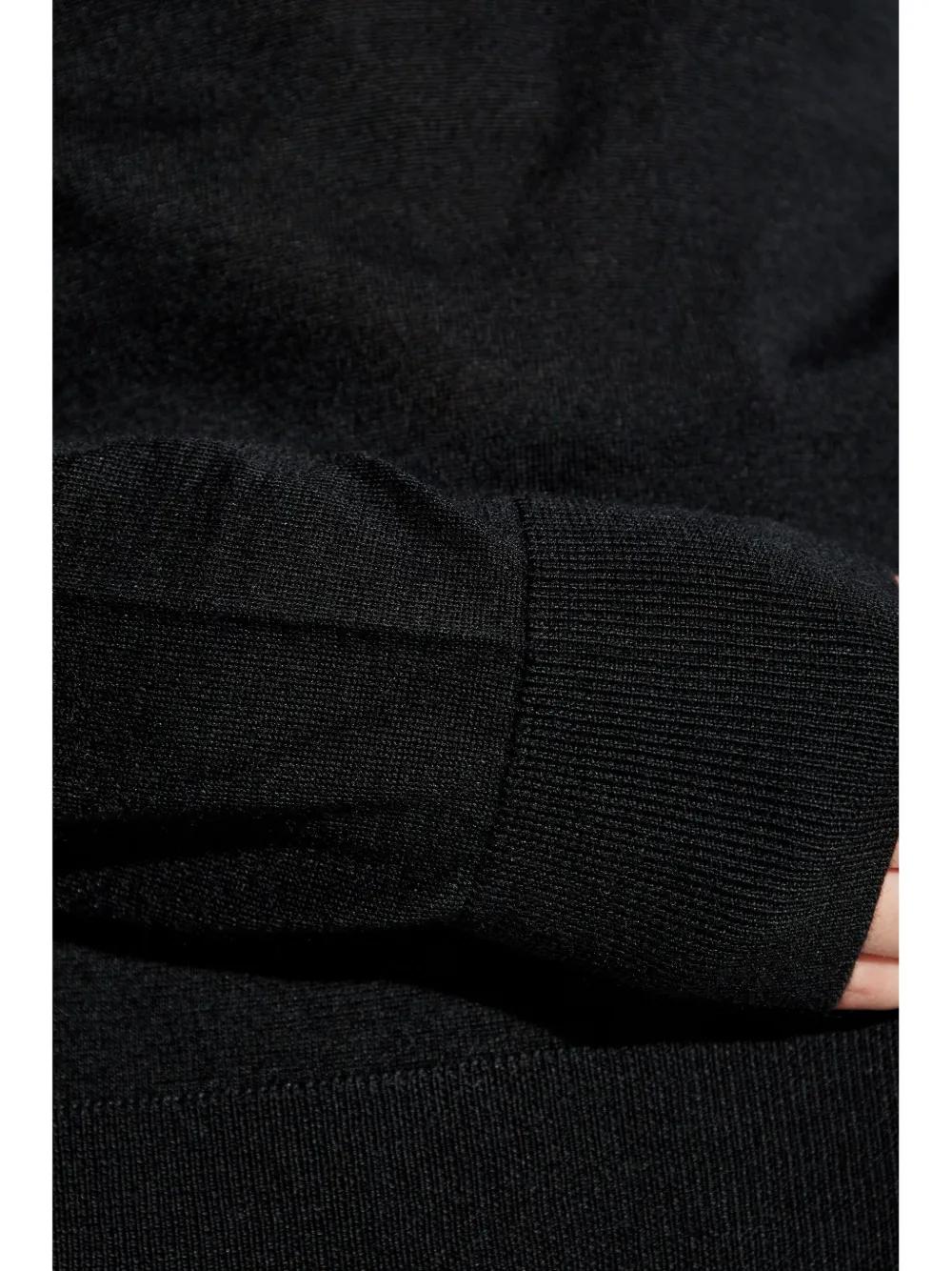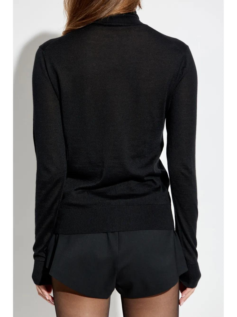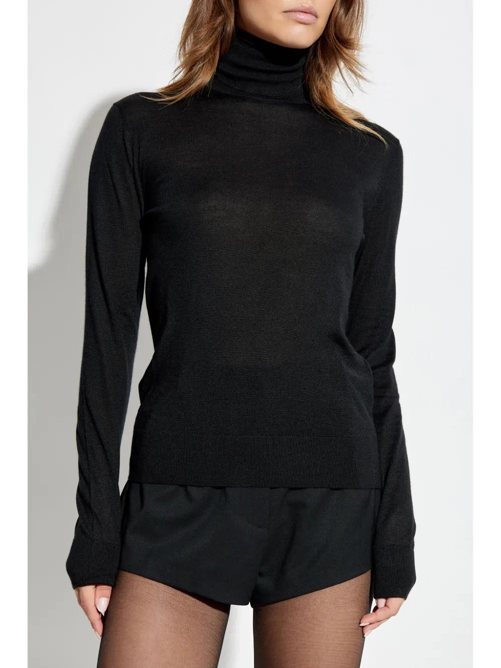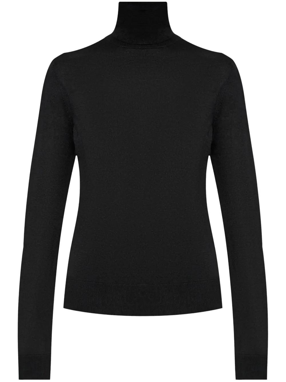 black cashmere-silk blend fine knit ribbed-knit edge mélange effect roll neck long sleeves straight hem