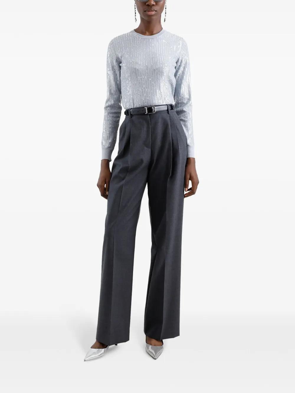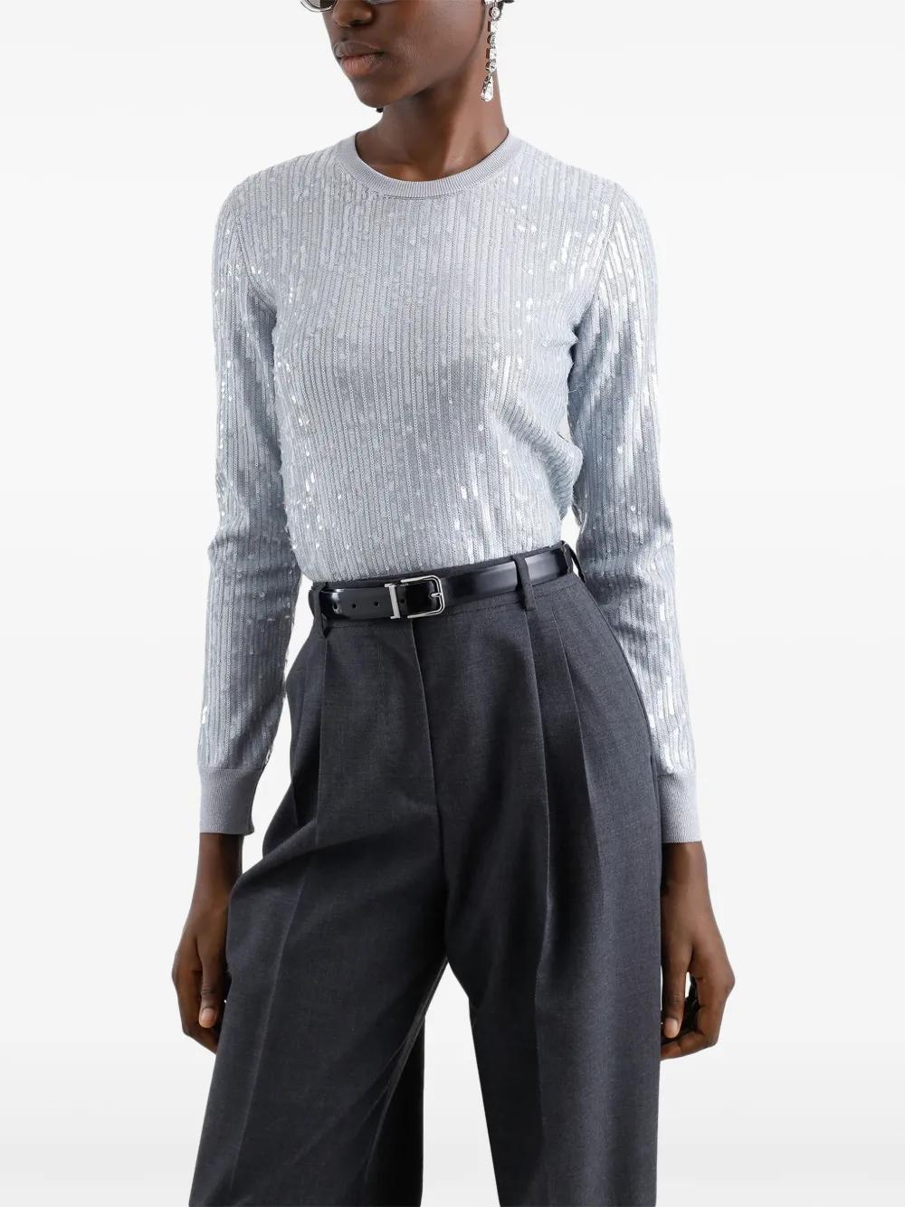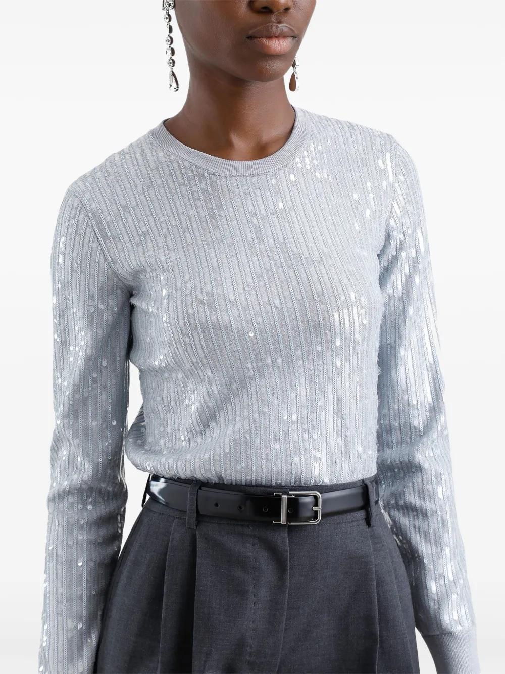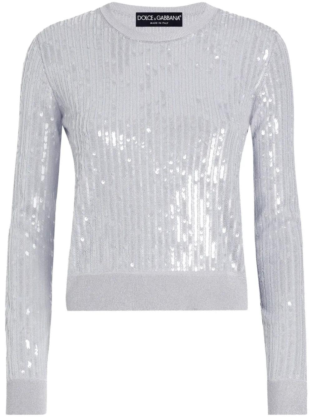 light grey sequin design knitted construction crew neck long sleeves ribbed cuffs and hem