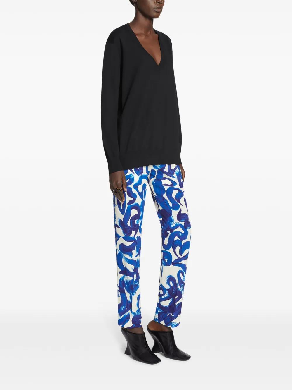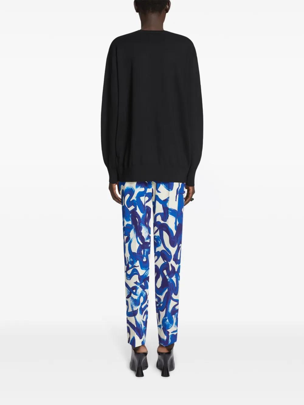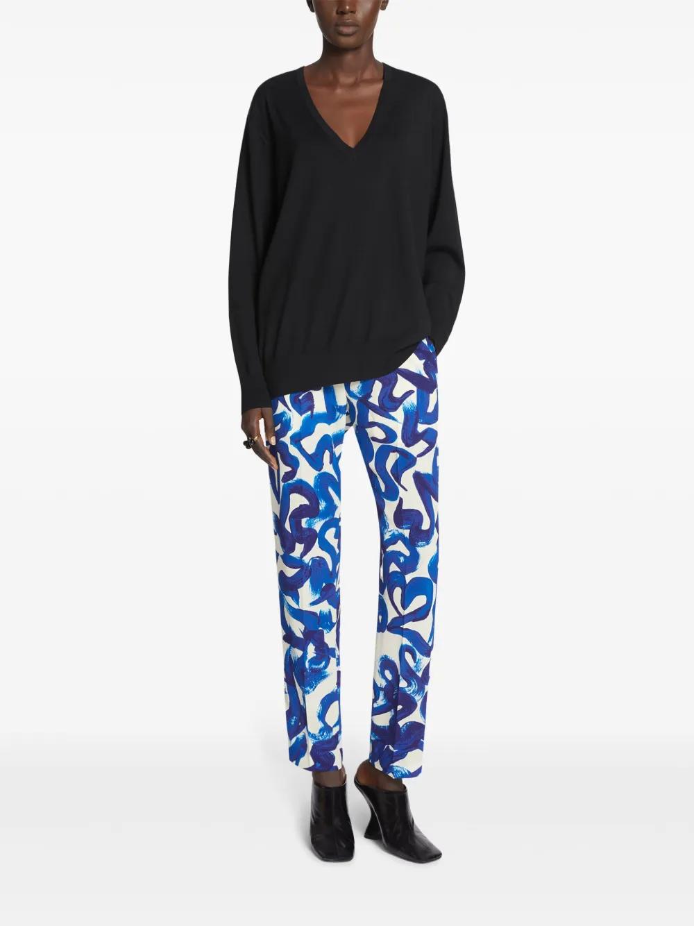black merino wool fine knit V-neck long sleeves ribbed trim