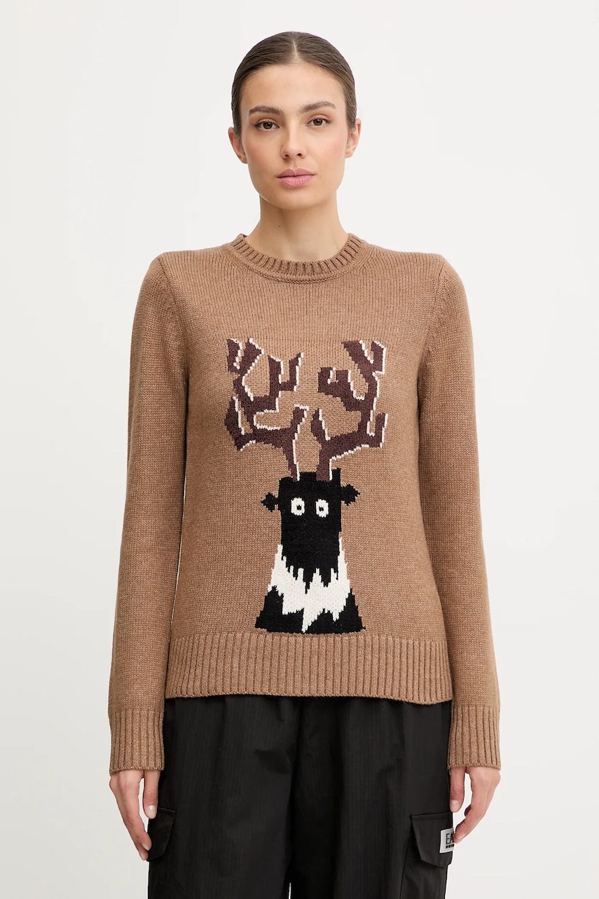EA7 Emporio Armani sweter z dodatkiem wełny damski kolor brązowy AF17652.7W000699