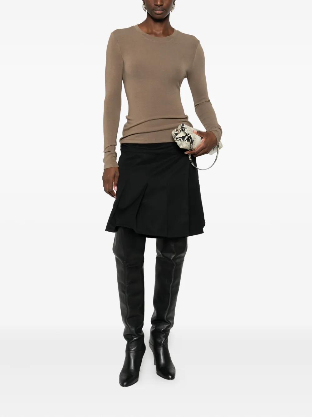 black organic cotton blend knitted construction elasticated band off-shoulder long sleeves straight hem
