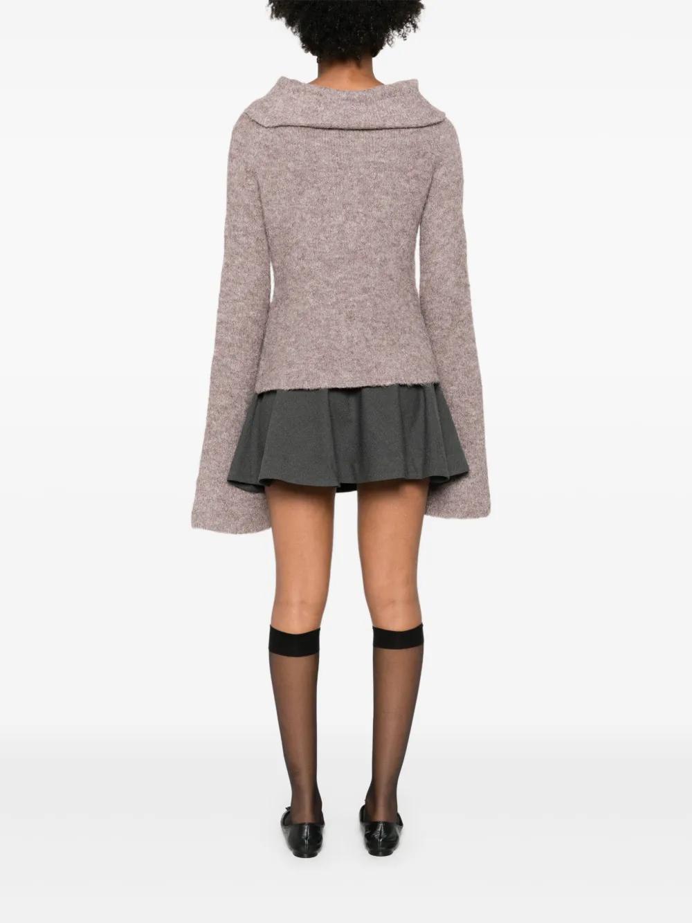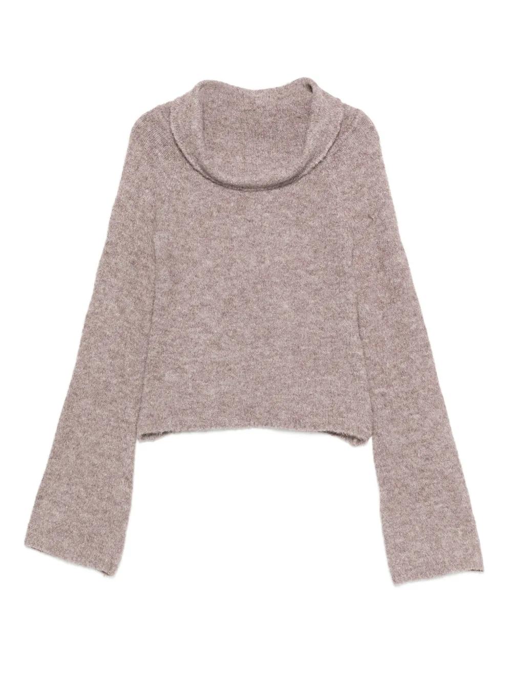 olive green virgin wool blend knitted construction signature single-stitch logo ribbed trim exposed-seam detailing distressed effect ripped detailing high neck drop shoulder long sleeves cropped