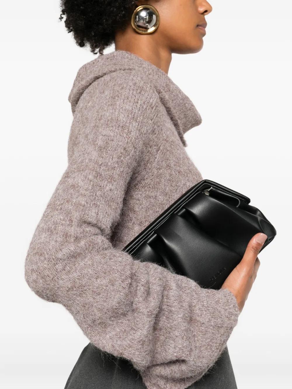 black virgin wool-blend ribbed knit turtleneck long sleeves