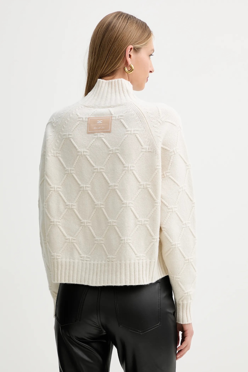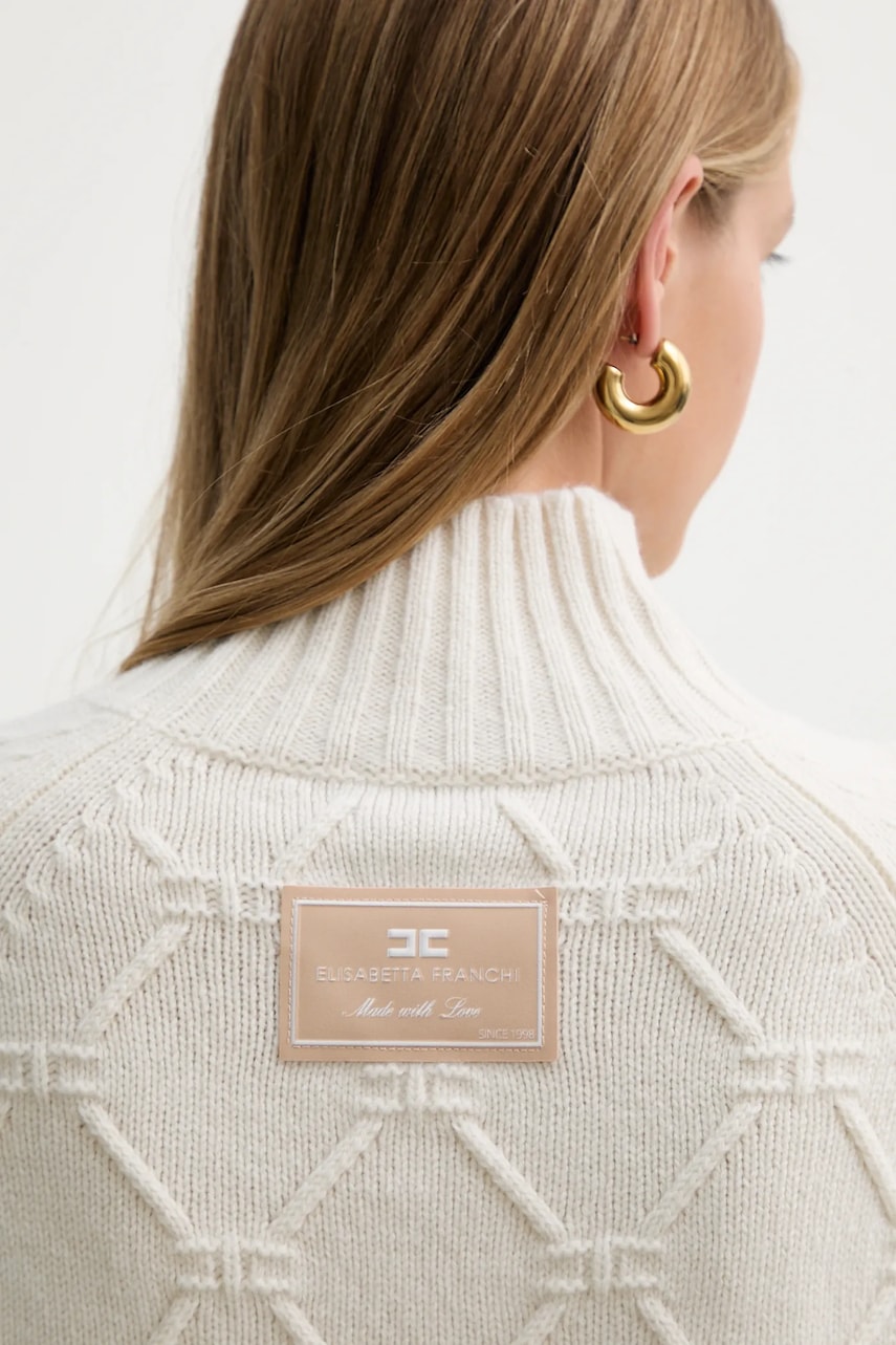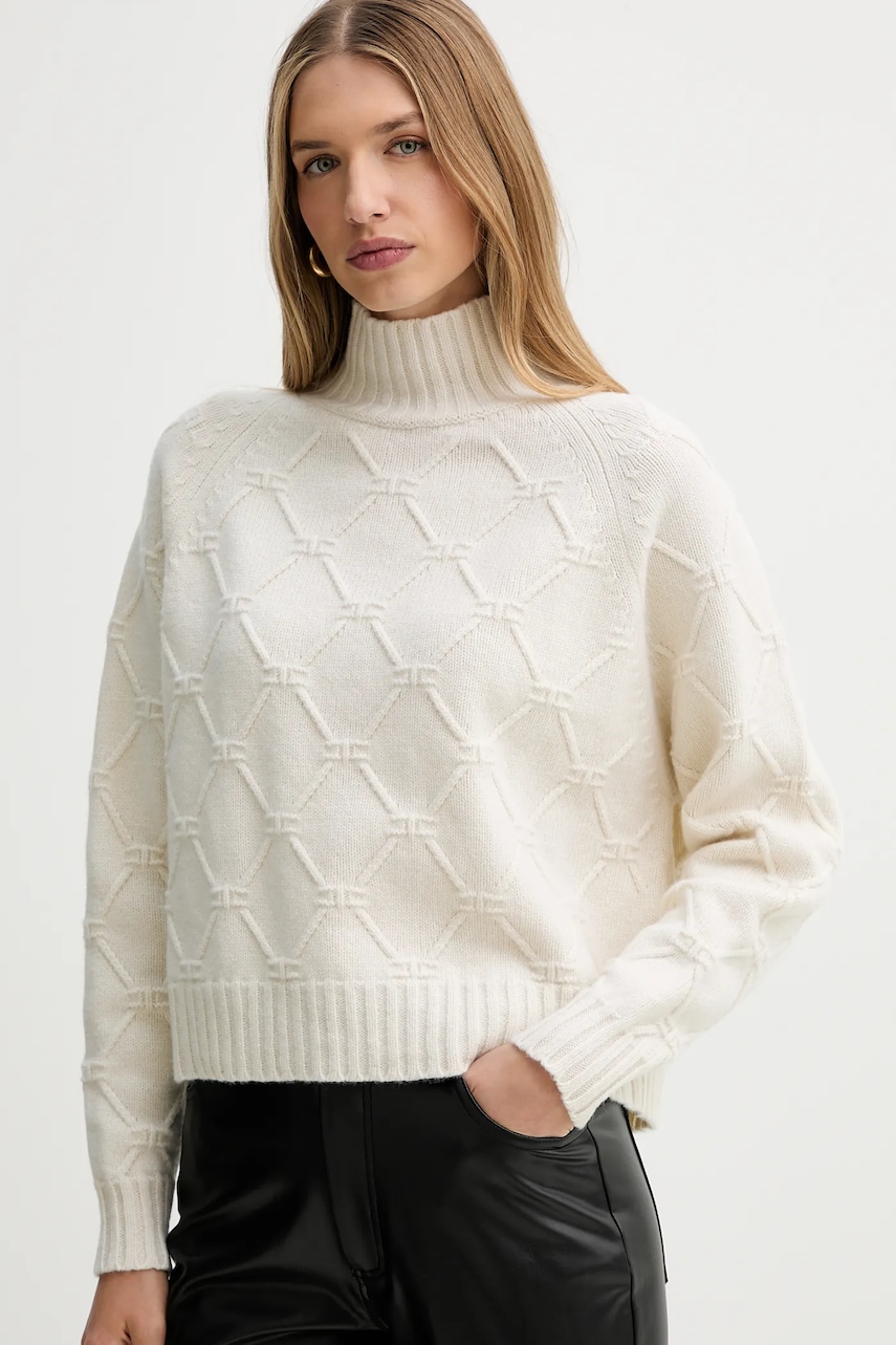 Elisabetta Franchi sweter wełniany damski kolor beżowy z golfem MK55T57E2