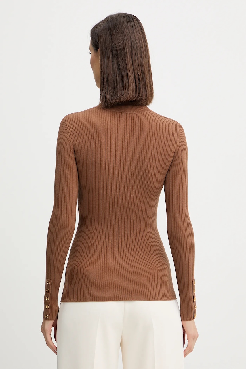 Elisabetta Franchi sweter z dodatkiem jedwabiu damski kolor brązowy lekki z golfem MK11B56E2