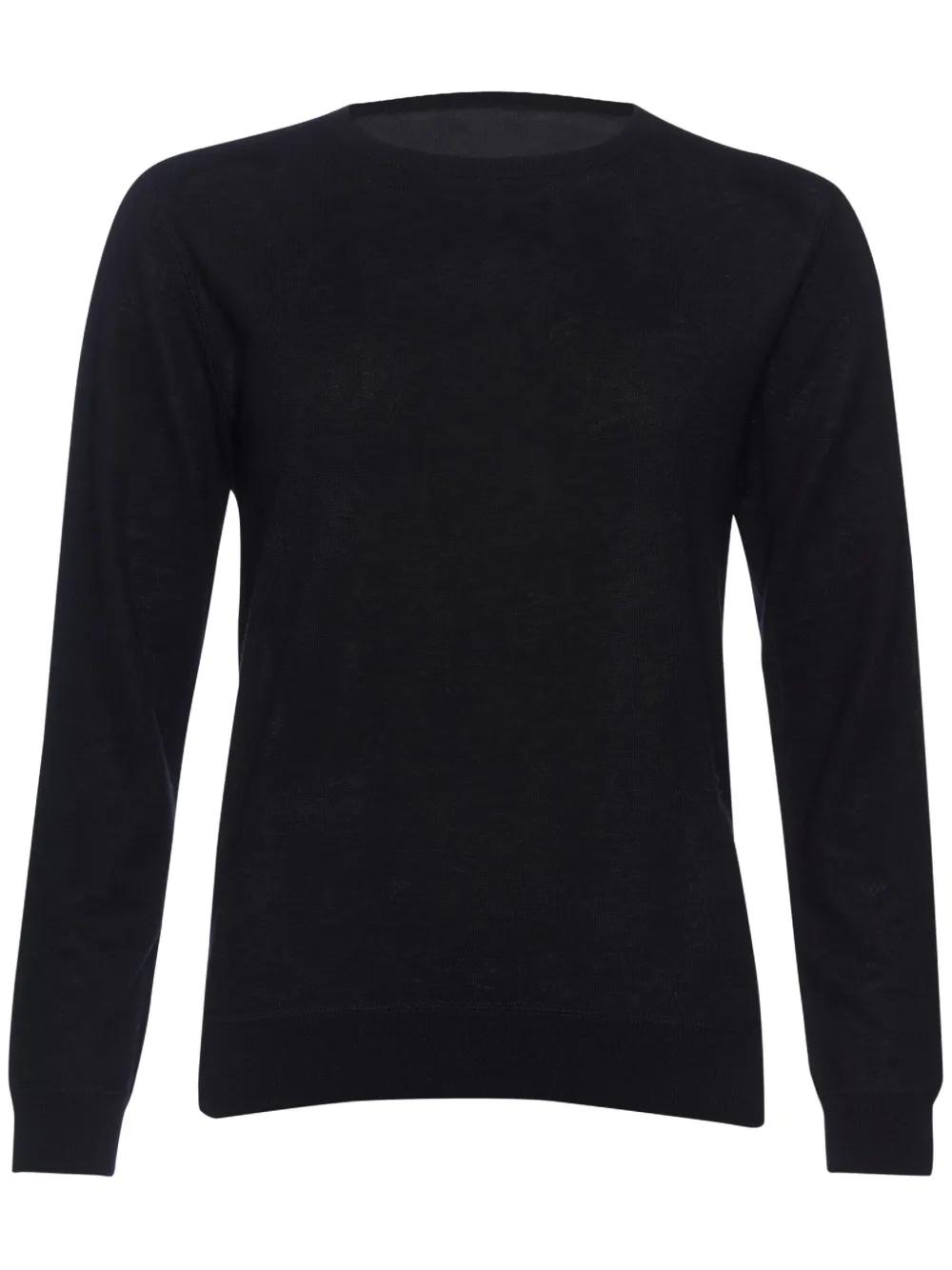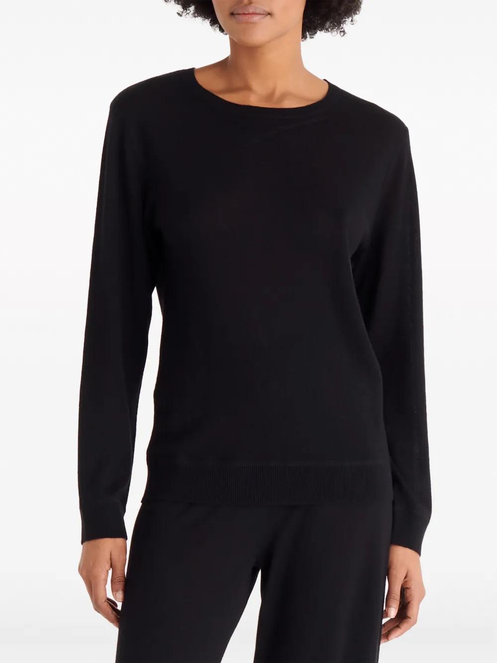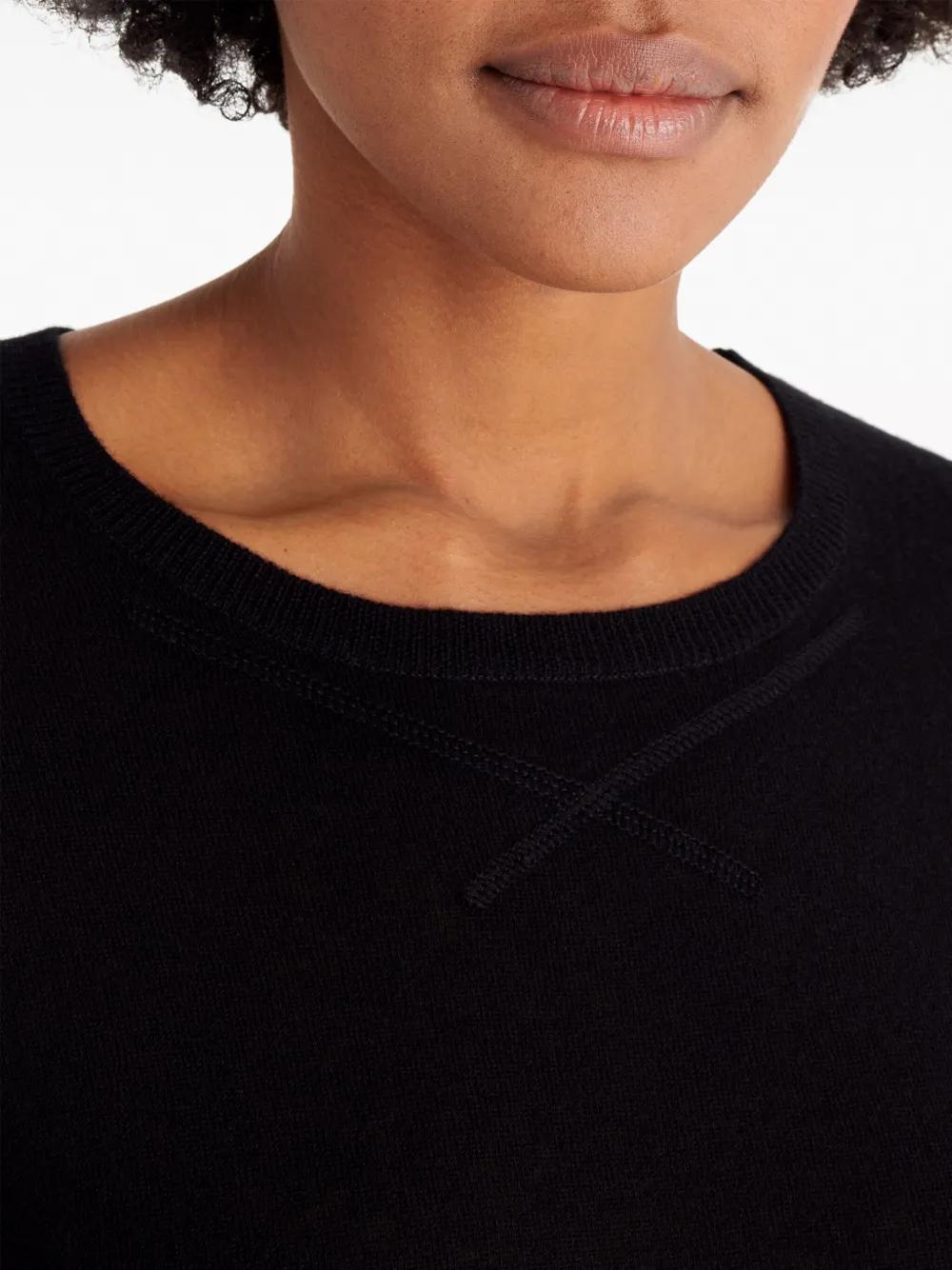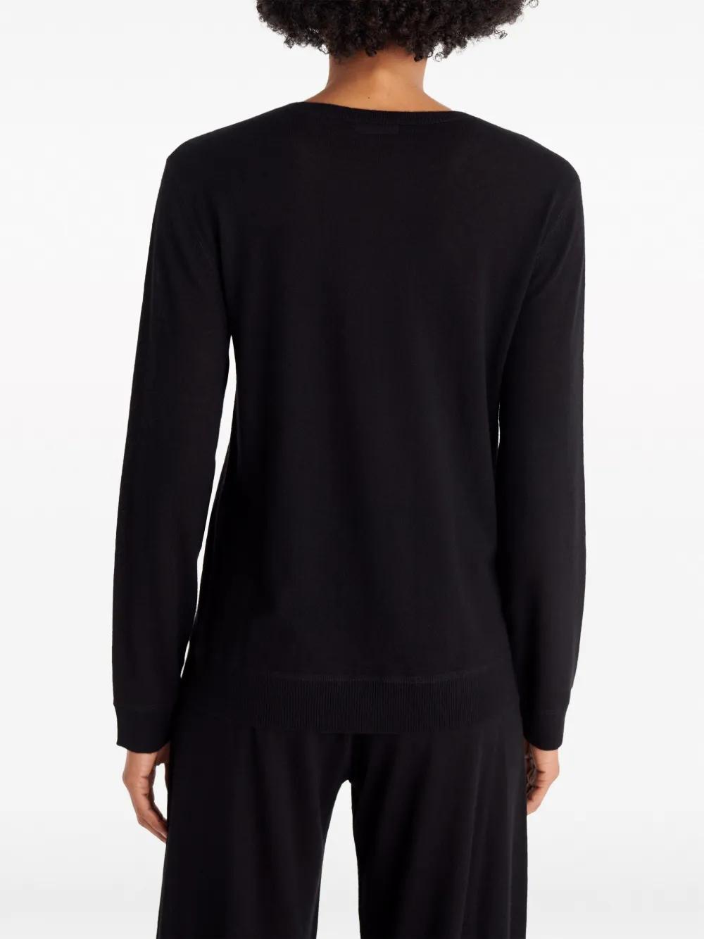 black cashmere fine knit crew neck long sleeves ribbed cuffs and hem