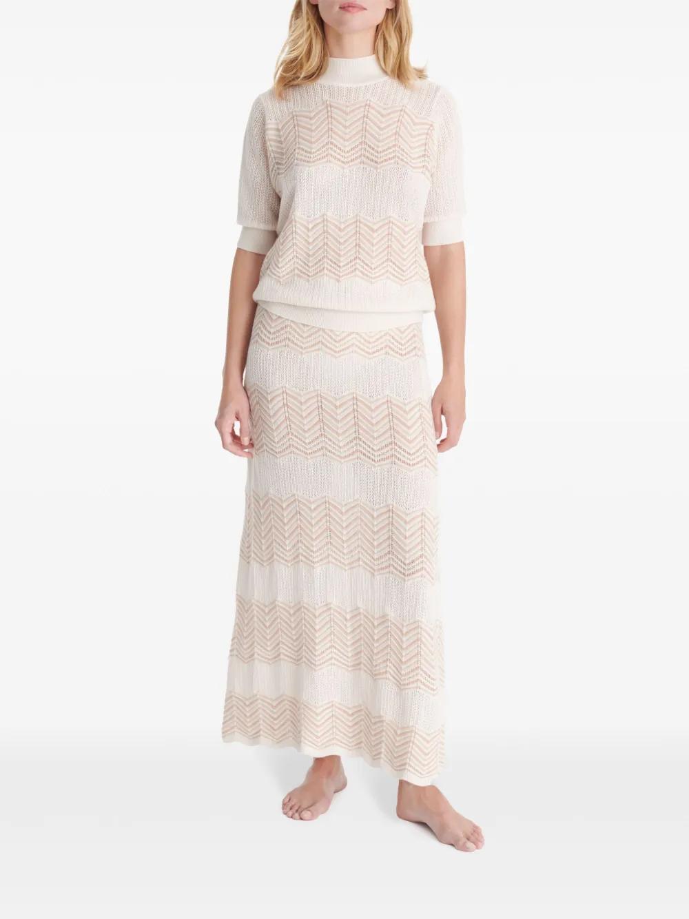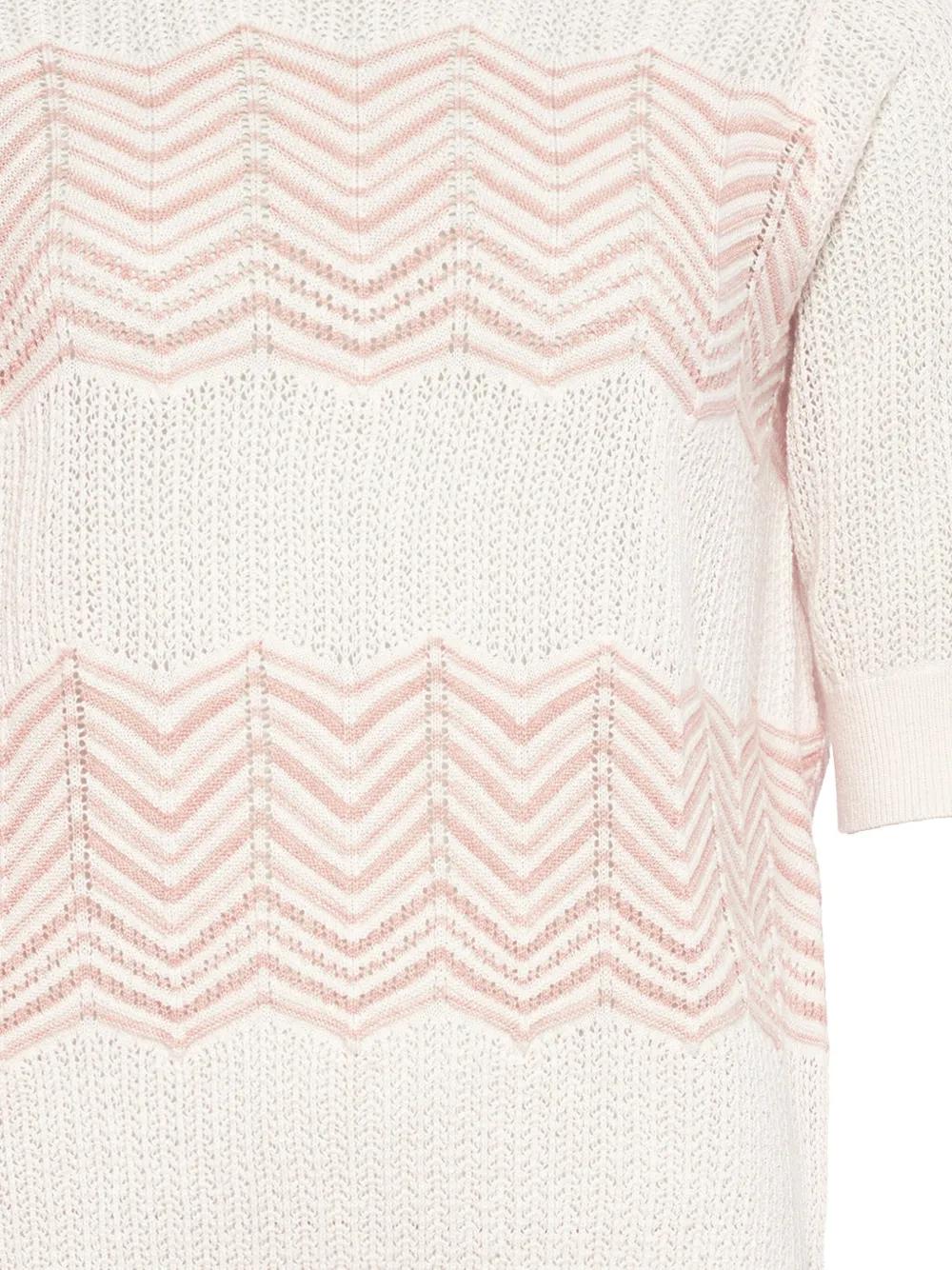 ivory white mock neck short sleeves ribbed cuffs and hem perforated design