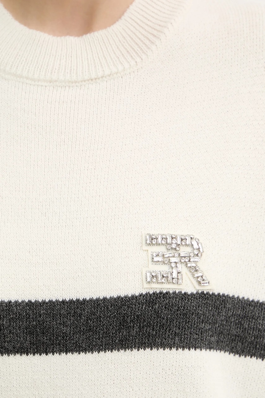 - Luźny krój zapewniający pełną swobodę ruchów. - Okrągły, prążkowany dekolt. - Długi rękaw. - Krój rękawa z obniżoną linią ramion nie ogranicza mobilności. - Rękawy i dolna krawędź zakończona ściągaczami chroniącymi przed niekorzystnymi warunkami atmosferycznymi. - Model z ozdobną aplikacją. - Długość rękawa(mierzona od dekoltu): 75 cm. - Długość: 70 cm. - Szerokość pod pachami: 60 cm. - Wymiary podane dla rozmiaru: 36.