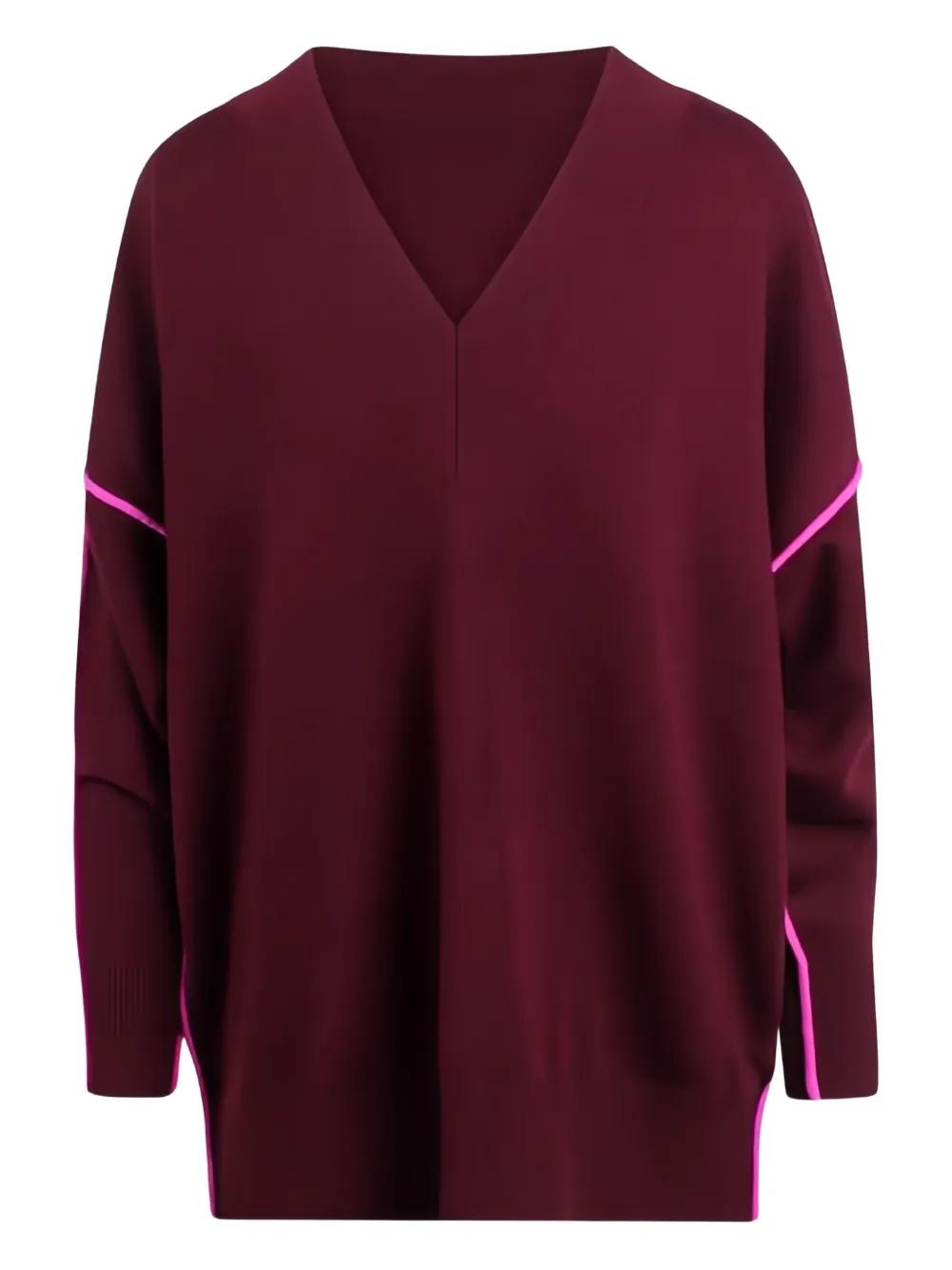 burgundy V-neck long sleeves piping ribbed hem ribbed cuffs