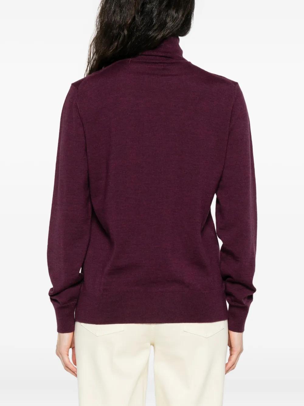 purple turtleneck long sleeves embroidered logo ribbed hem