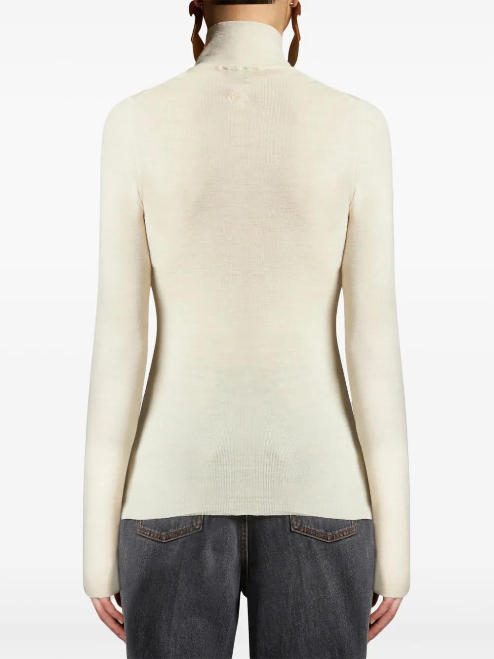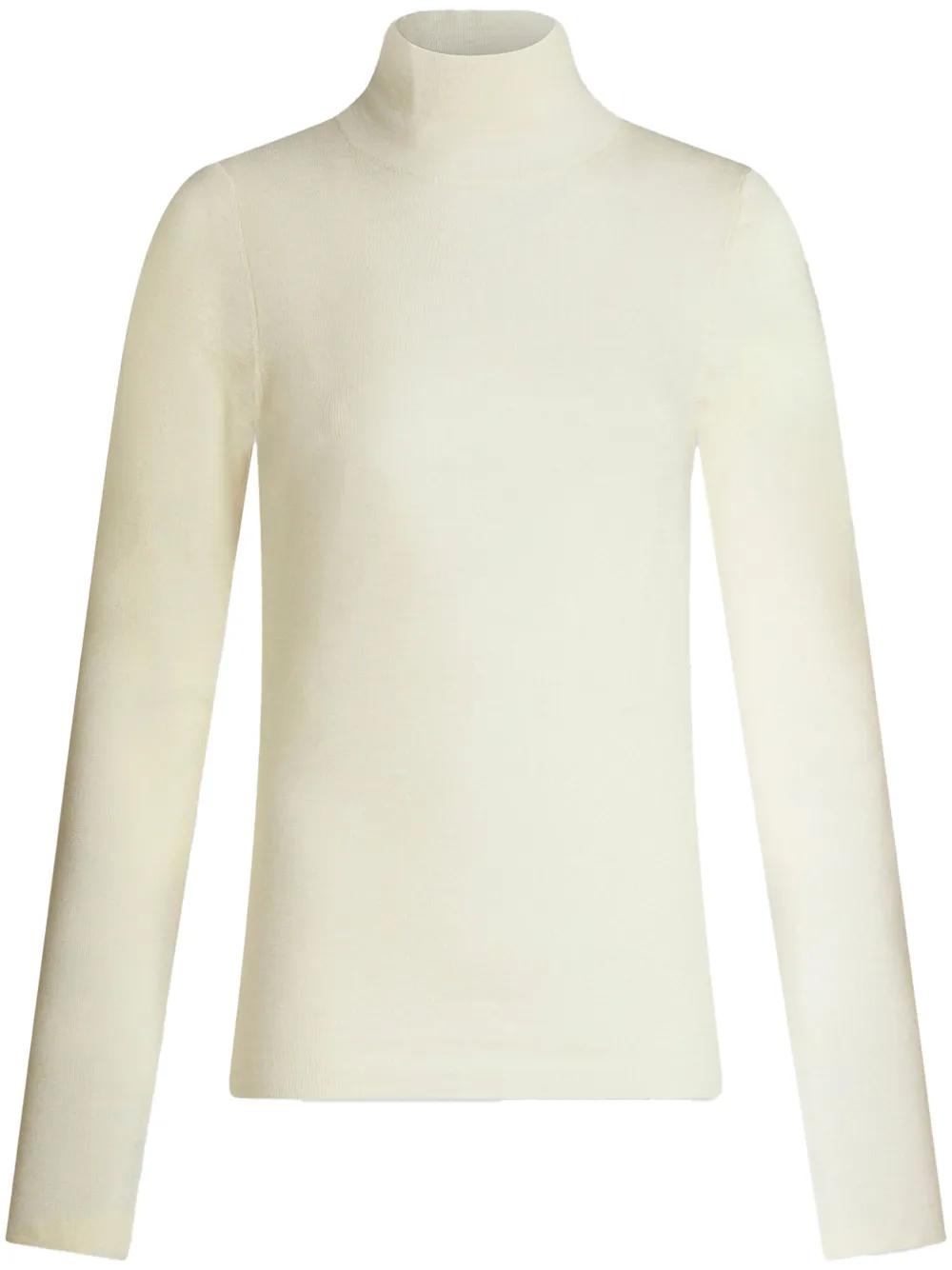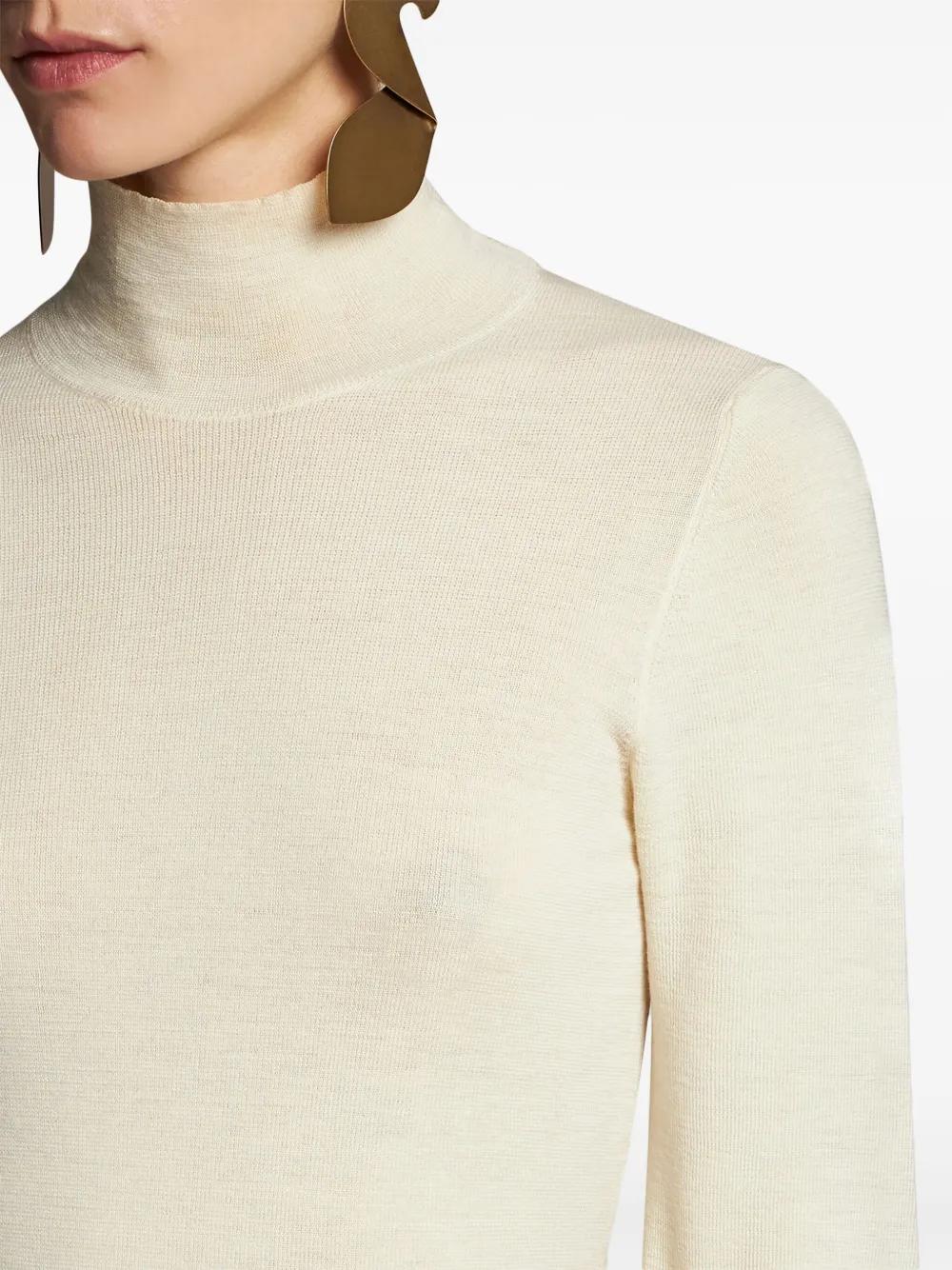 cream white wool fine knit high neck long sleeves straight hem pull-on style