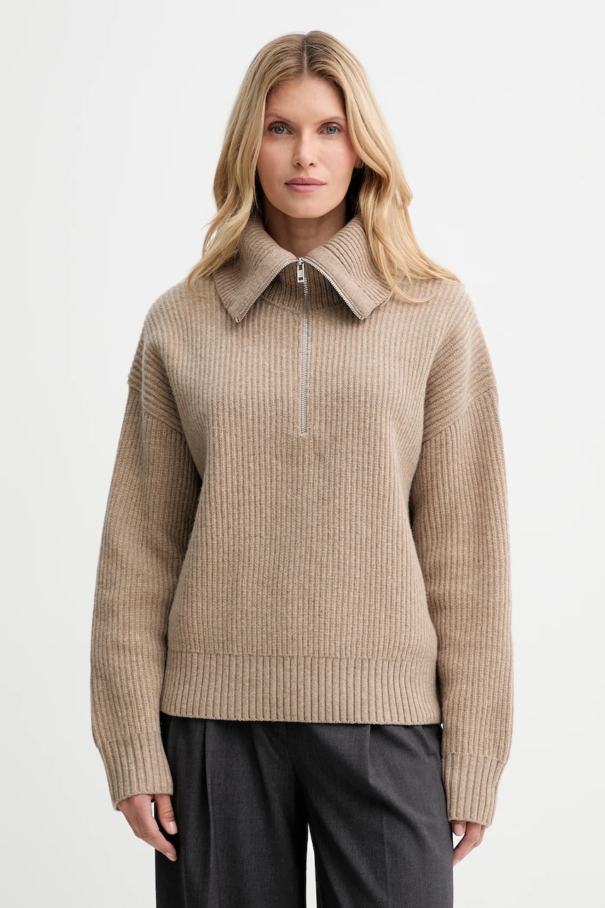Filippa K sweter wełniany damski kolor beżowy z golfem 31654