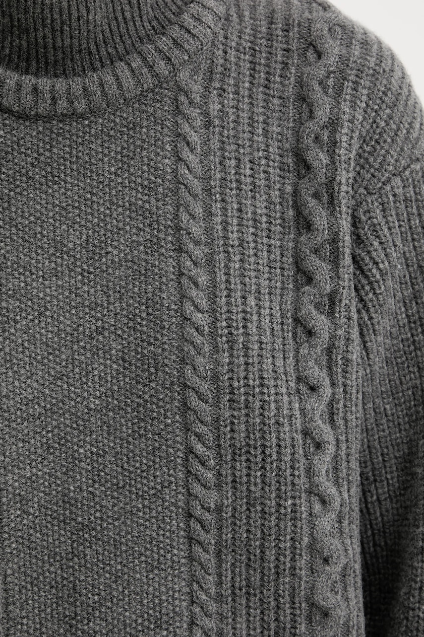 - Luźny krój zapewniający pełną swobodę ruchów. - Krój rękawa z obniżoną linią ramion nie ogranicza mobilności. - Model z golfem. - Gruba, elastyczna dzianina. - Efektowny splot. - Długość rękawa(mierzona od dekoltu): 84,5 cm. - Długość: 62 cm. - Szerokość pod pachami: 58 cm. - Wymiary podane dla rozmiaru: S.