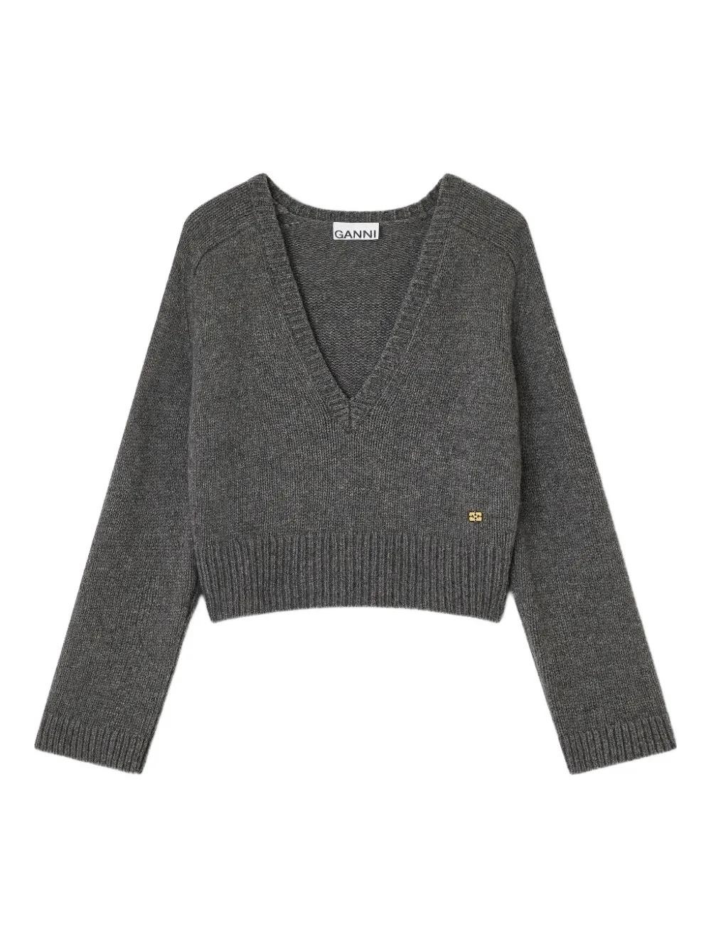 charcoal ribbed hem ribbed cuffs long sleeves V-neck