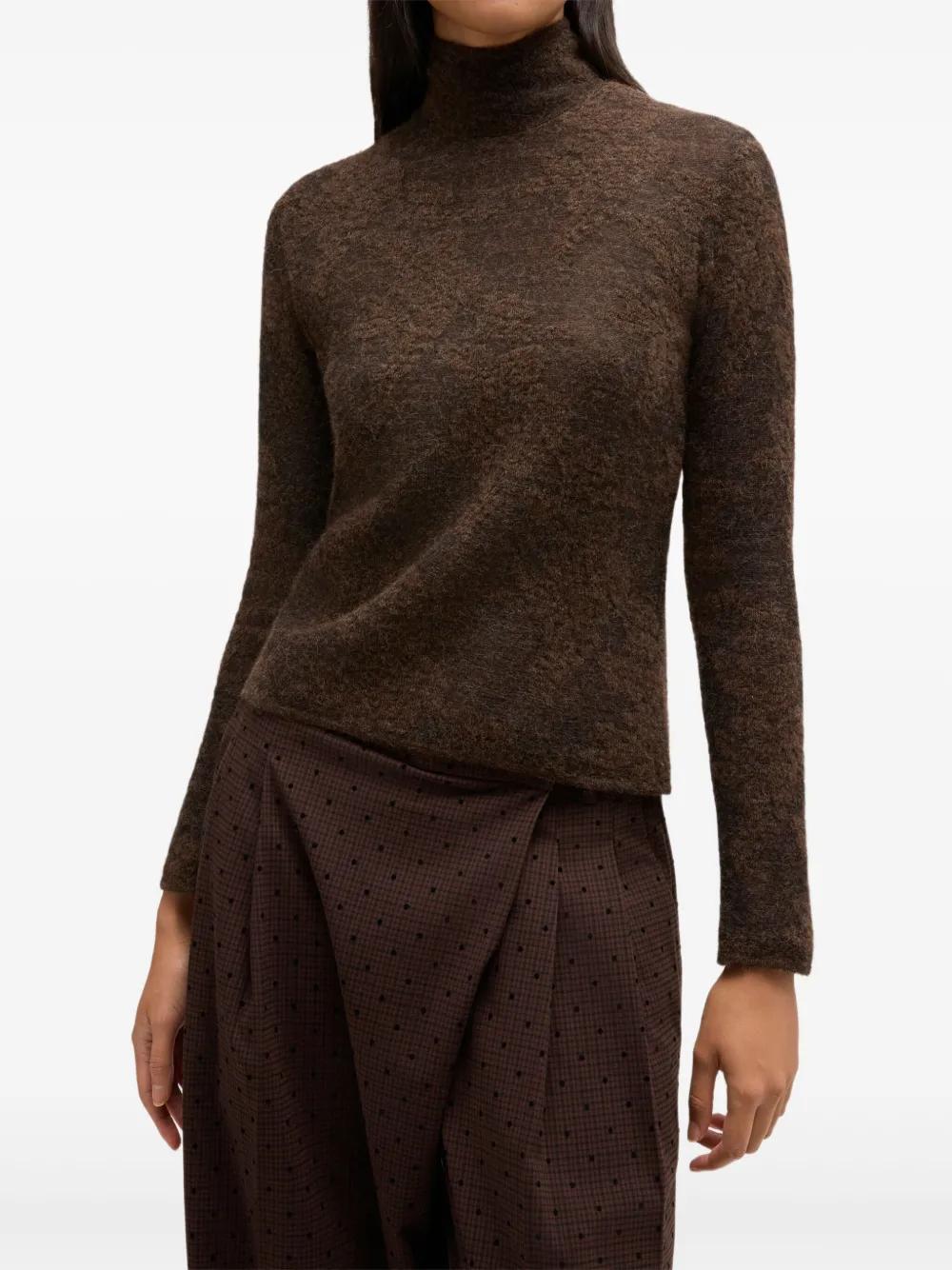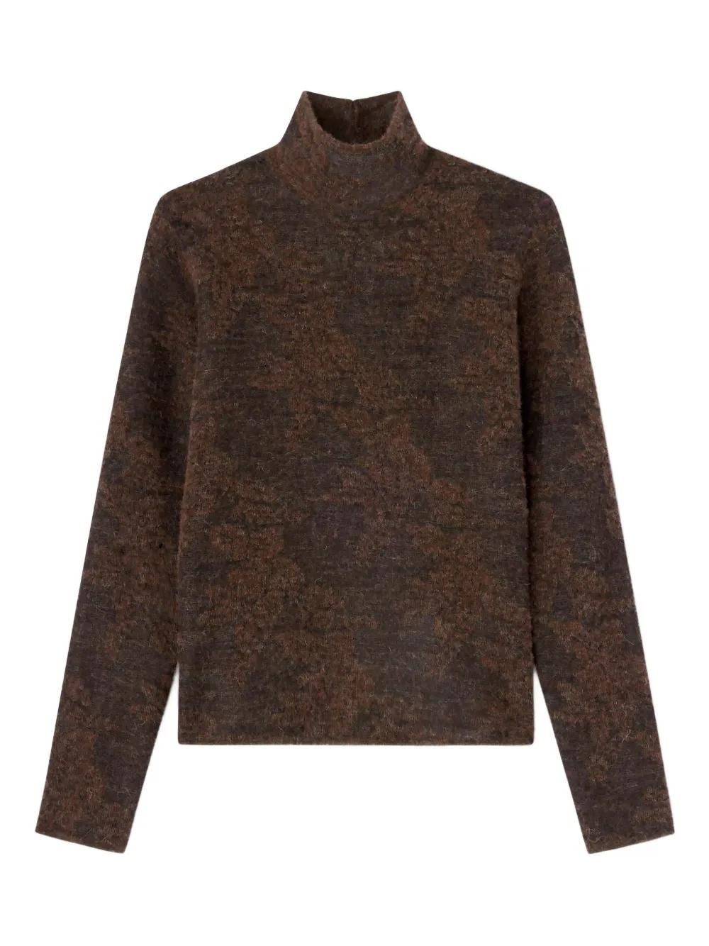 brown high neck long sleeves button fastening at the rear keyhole detail at the rear