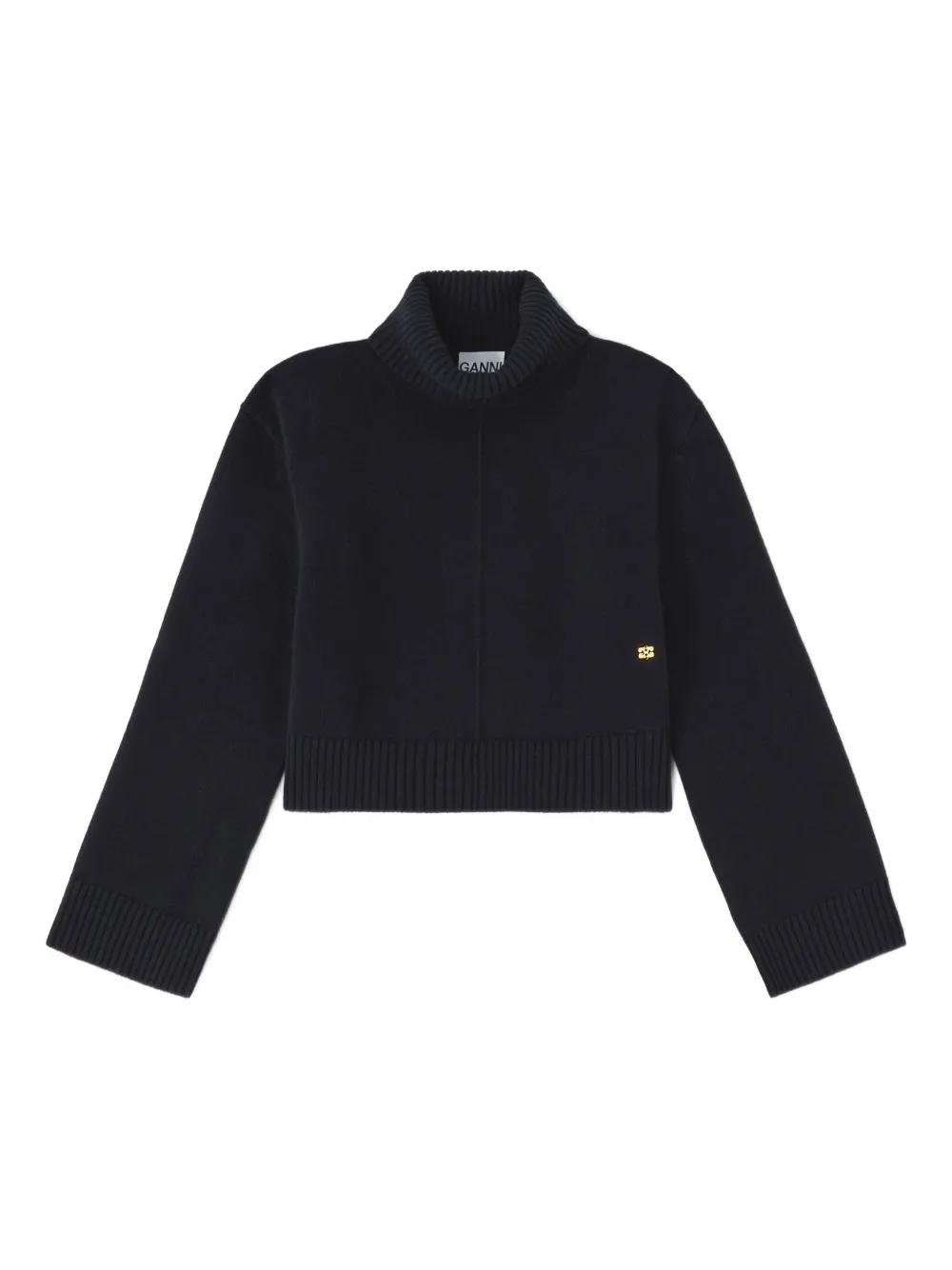 black organic cotton blend knitted construction elasticated band off-shoulder long sleeves straight hem