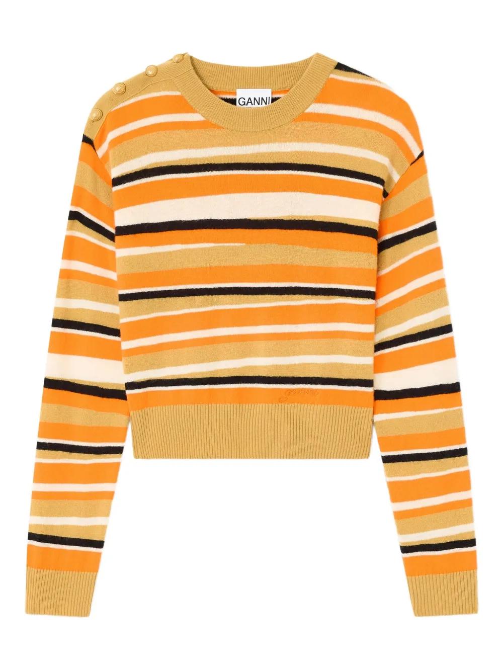 yellow horizontal stripes crew neck long sleeves button detail ribbed hem