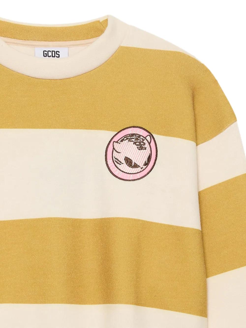 yellow striped detailing round neck long sleeves appliqué logo at the chest