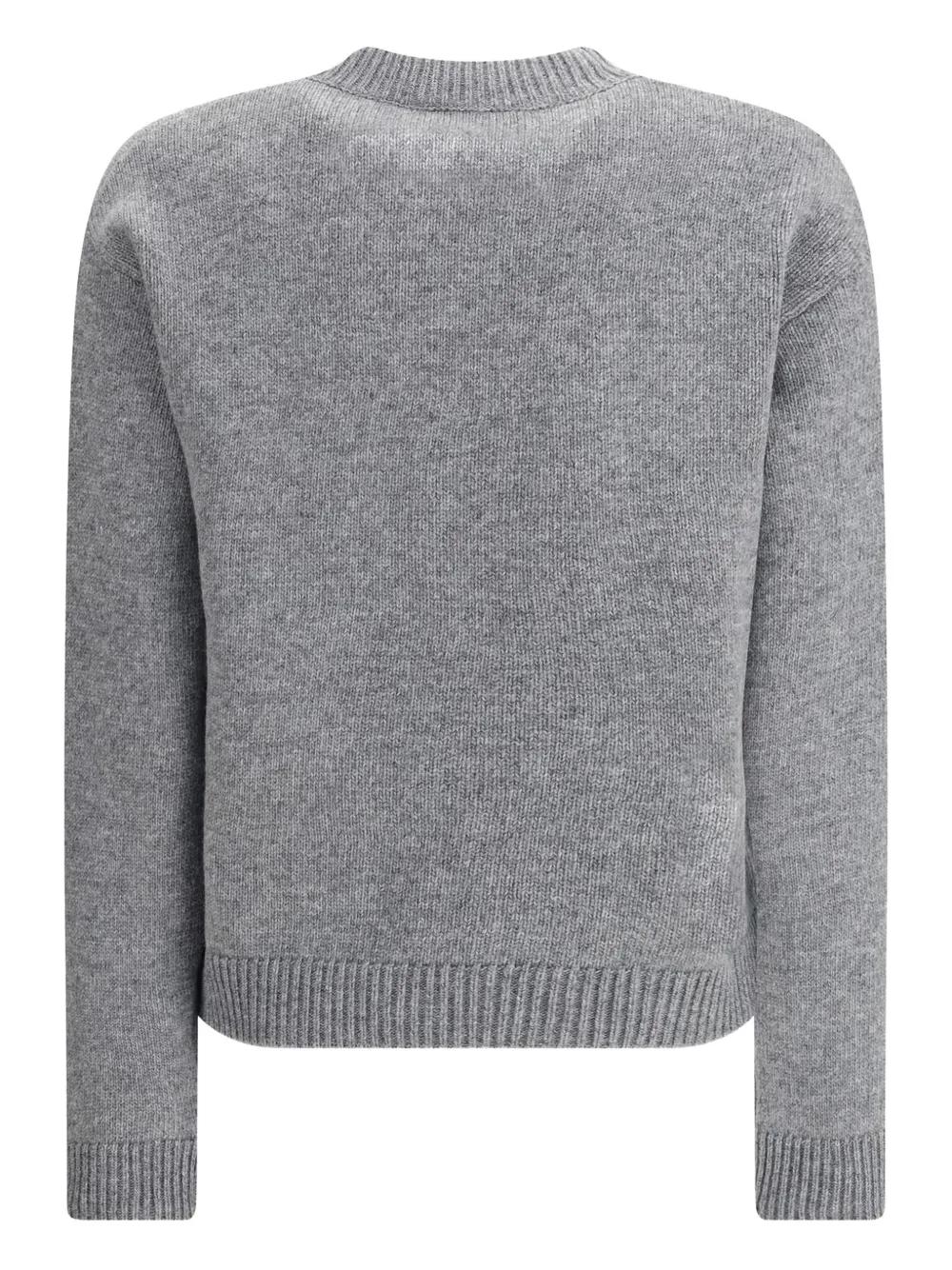 grey knitted construction logo intarsia ribbed hem ribbed cuffs round neck