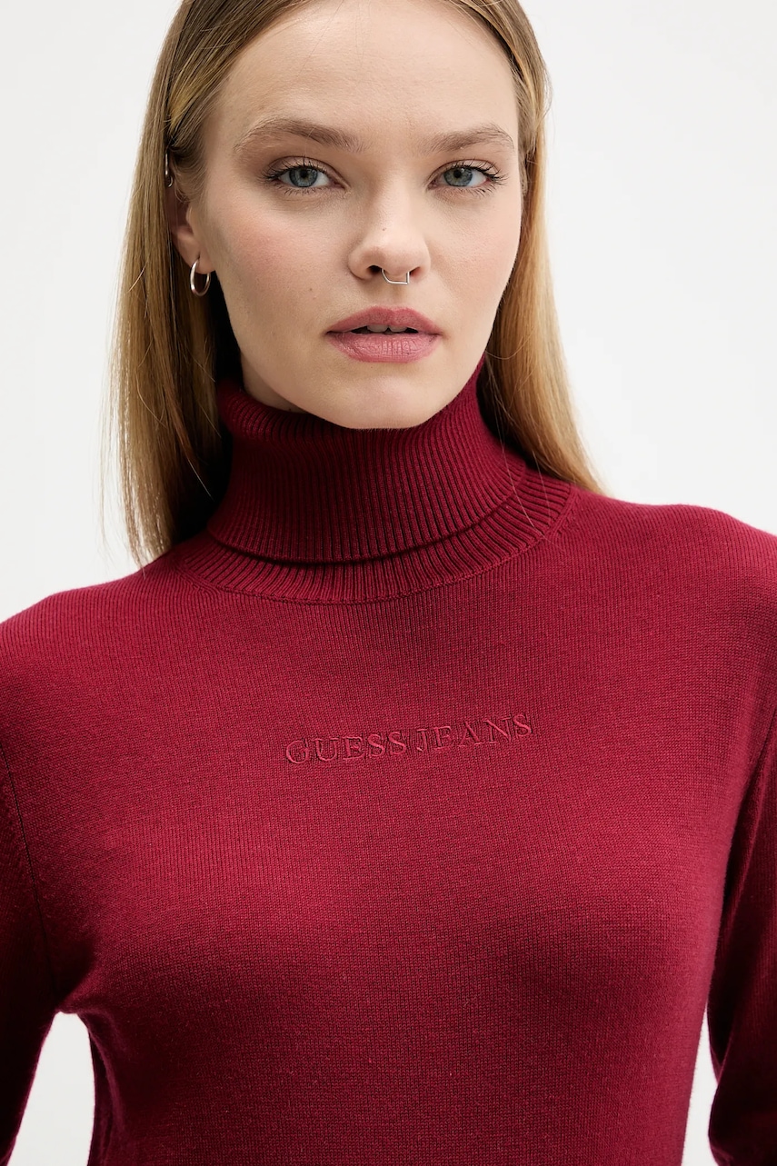 Guess Jeans sweter damski kolor bordowy z golfem W4BR15 Z3HO2