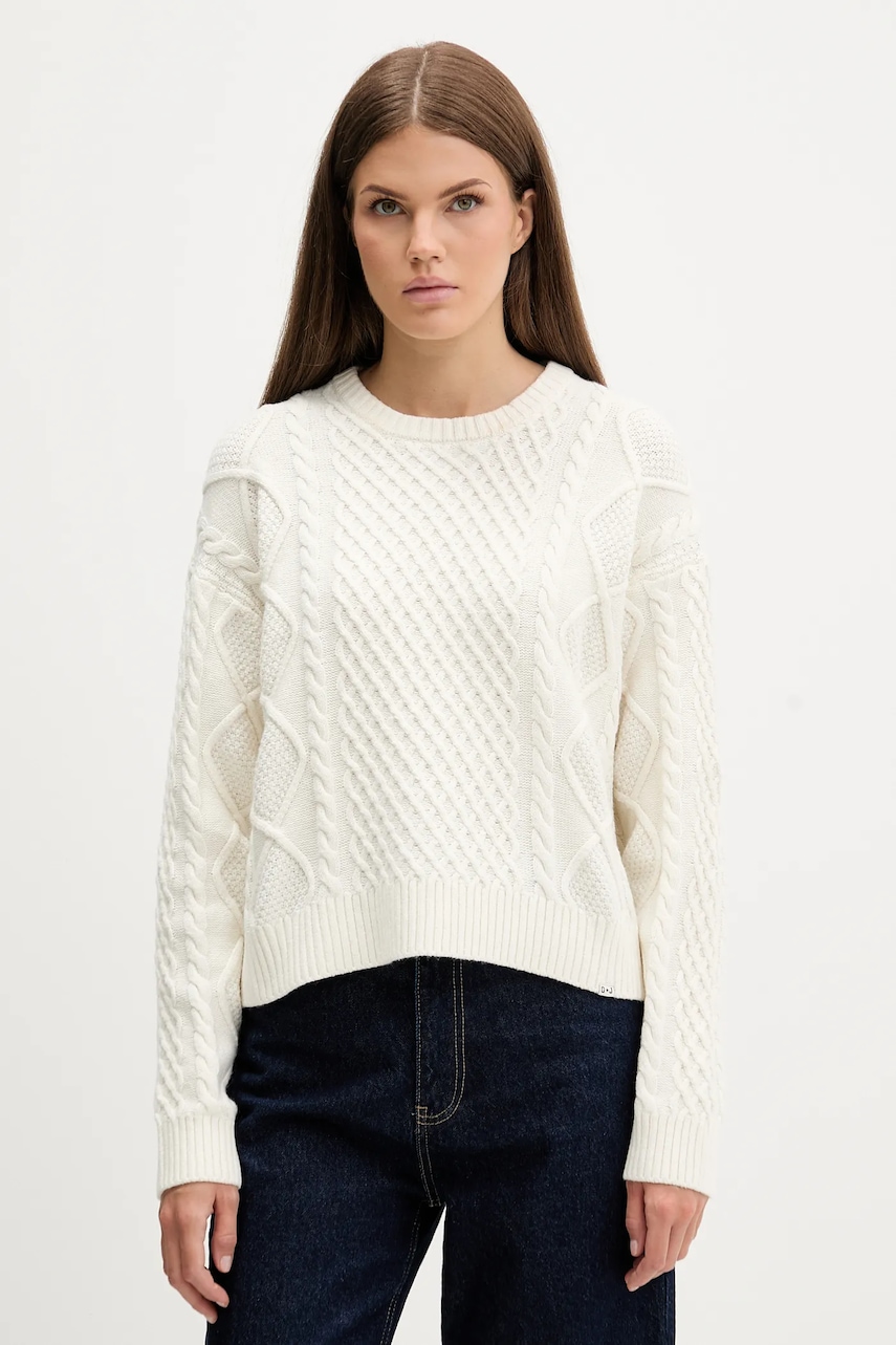 Guess Jeans sweter z dodatkiem wełny damski kolor beżowy lekki W5BR09 Z0561