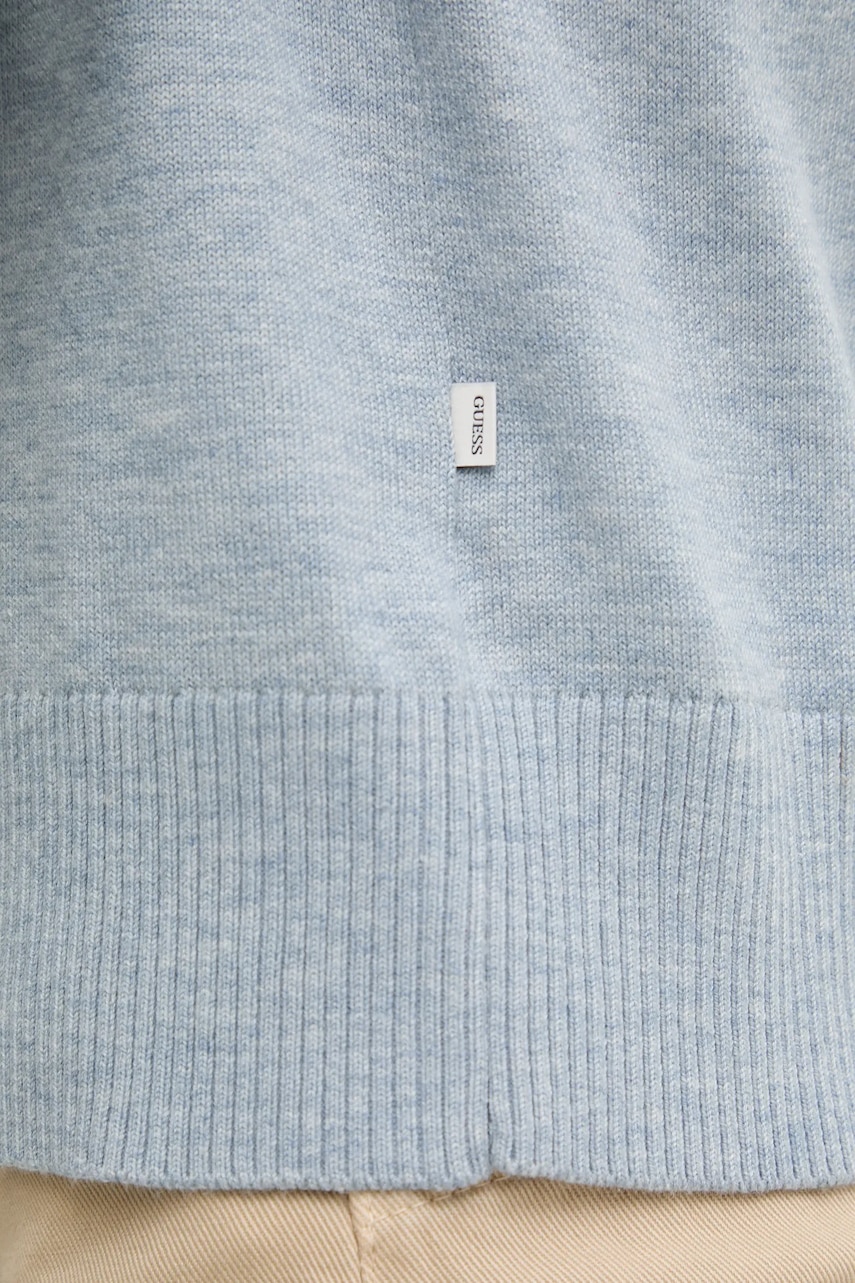 - Produkty GUESS JEANS® są projektowane tak, aby generowały jak najmniej odpadów bez obniżenia jakości i trwałości. - Prosty, nie blokujący ruchów fason. - Okrągły, prążkowany dekolt. - Długi rękaw. - Rękawy i dolna krawędź zakończona ściągaczami chroniącymi przed niekorzystnymi warunkami atmosferycznymi. - Dzianina średniej grubości. - Z przodu wyhaftowane logo marki. - Długość rękawa: 68 cm. - Długość: 54 cm. - Szerokość pod pachami: 45 cm. - Wymiary podane dla rozmiaru: S.