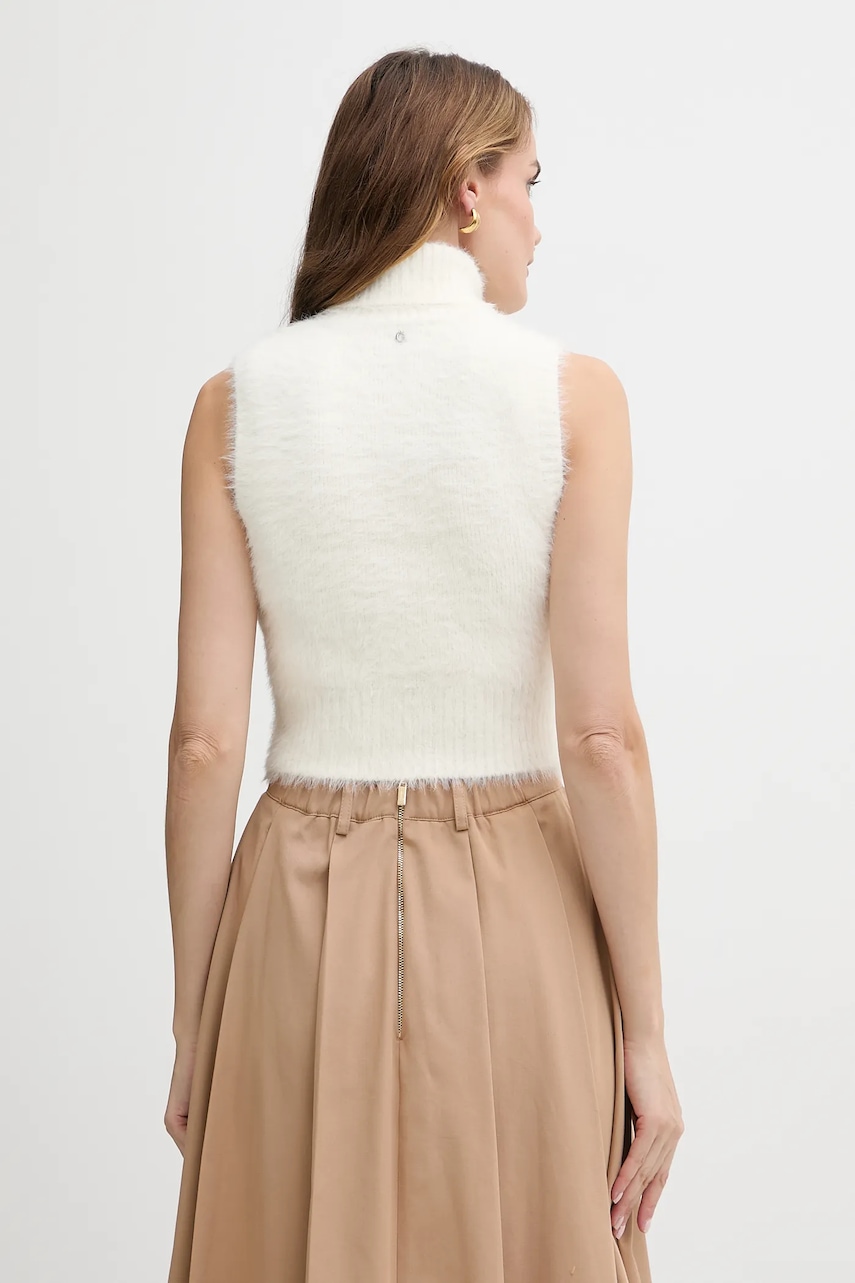 - Fason regular. - Model z golfem. - Model bez rękawów. - Długość: 43 cm. - Szerokość pod pachami: 37 cm. - Wymiary podane dla rozmiaru: S.