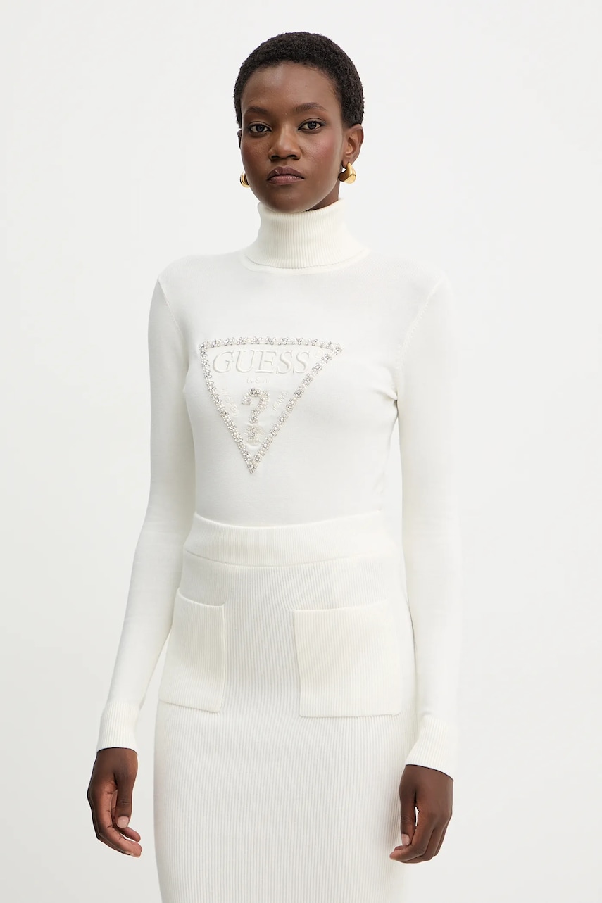 Guess sweter MELANIE damski kolor beżowy lekki z golfem W5BR39 Z2NQ2