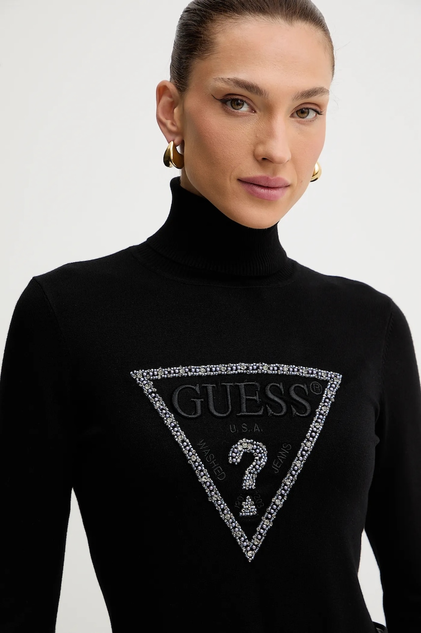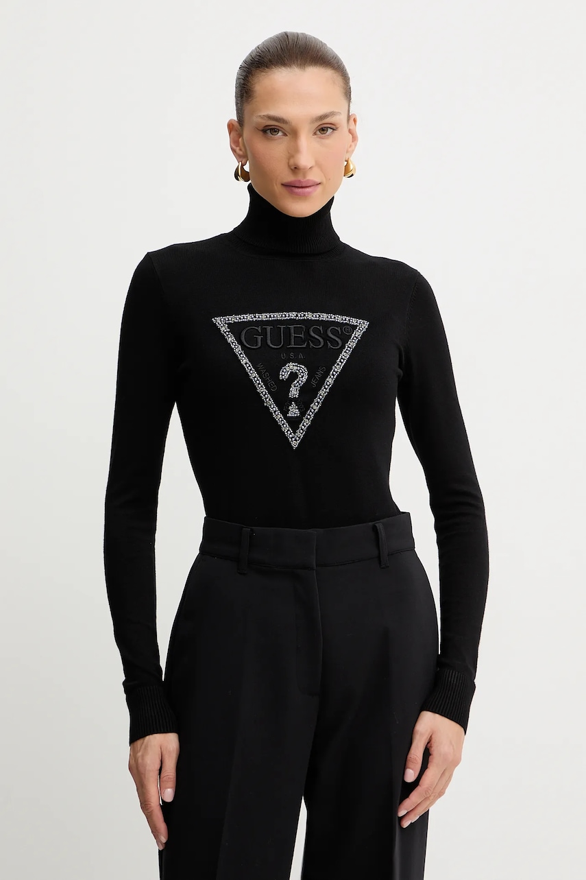 Guess sweter MELANIE damski kolor czarny lekki z golfem W5BR39 Z2NQ2