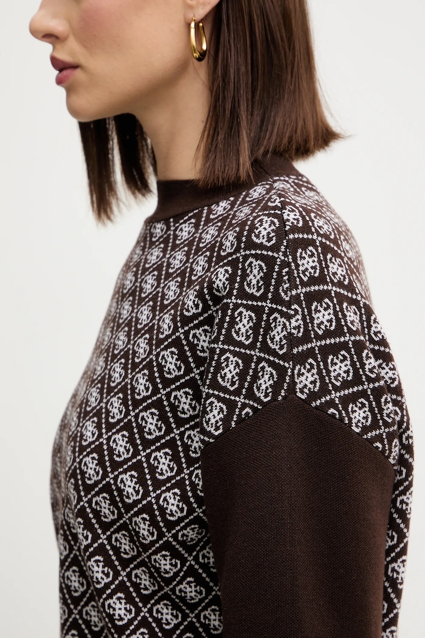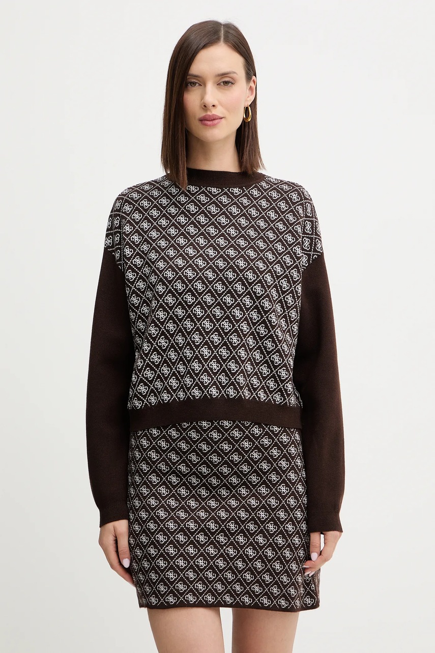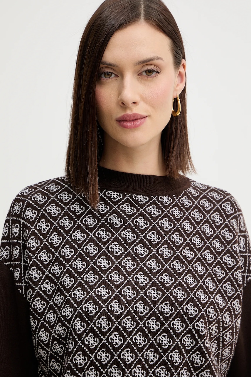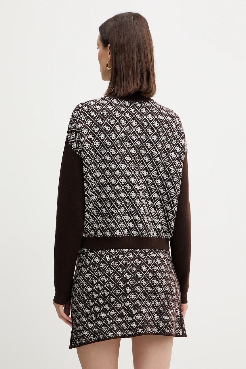 Guess sweter z domieszką wełny AUBREY damski kolor brązowy z półgolfem W5BR23 Z3JD2