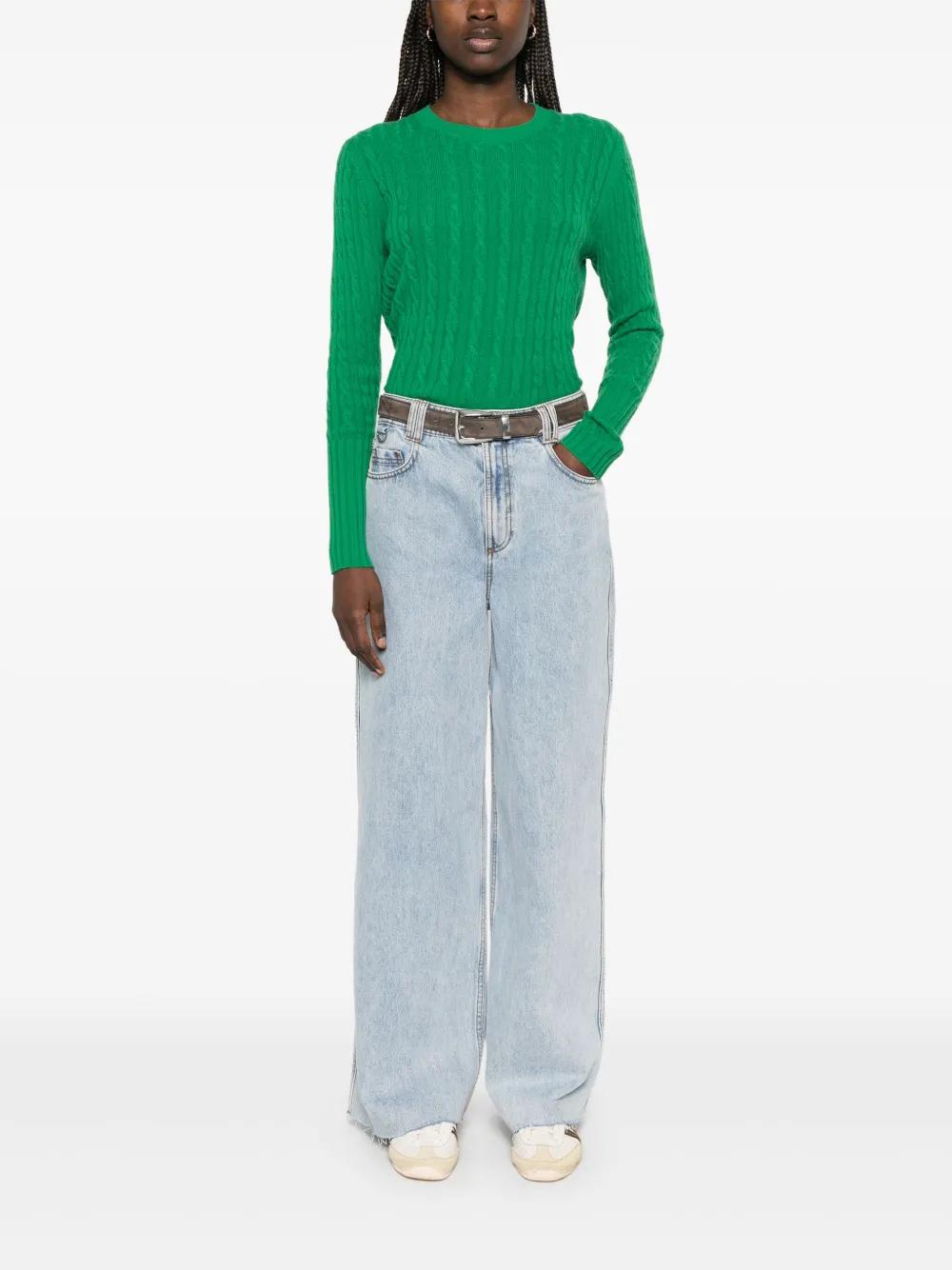 emerald green crew neck long sleeves ribbed cuffs and hem