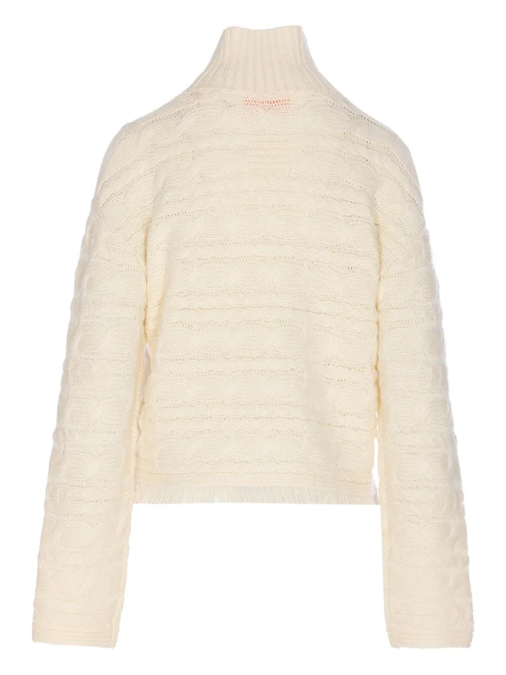off-white turtleneck cable knit frayed hem long sleeves wool-cashmere blend