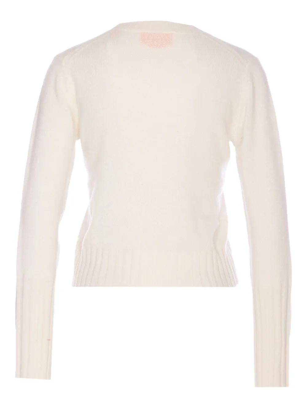 white crew neck long sleeves ribbed hem ribbed cuffs cashmere