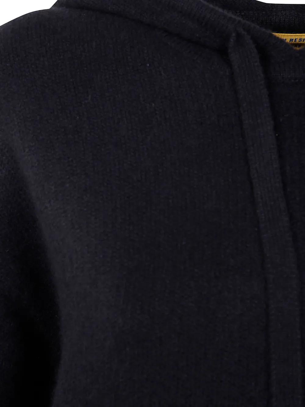 black cashmere ribbed hem drawstring hood