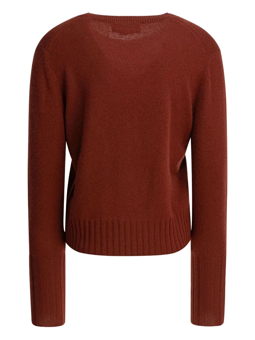 brown cashmere ribbed cuffs ribbed hem round neck long sleeves