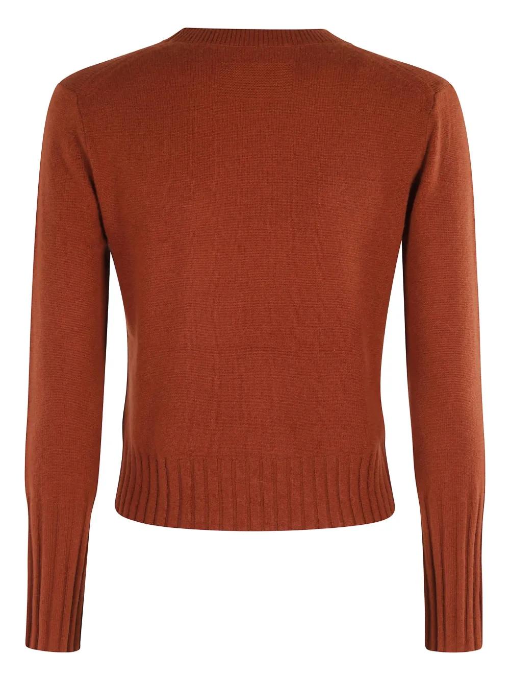 brown cashmere round neck long sleeves ribbed cuffs ribbed hem
