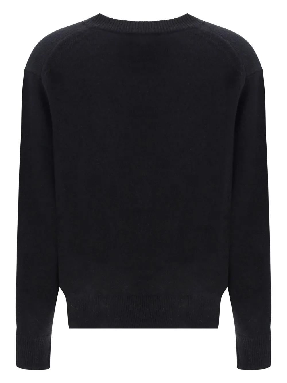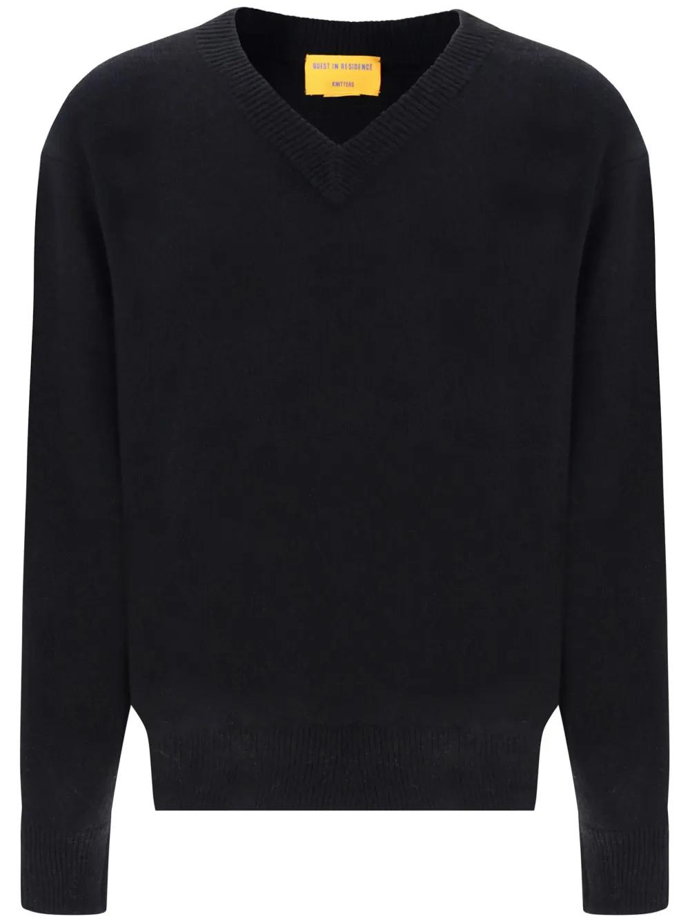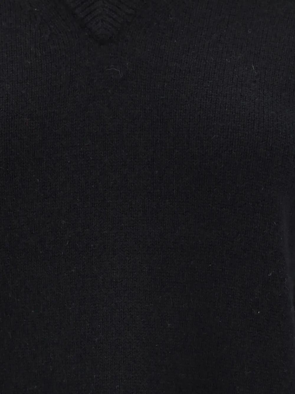 black cashmere ribbed knit V-neck long sleeves ribbed cuffs and hem internal logo patch