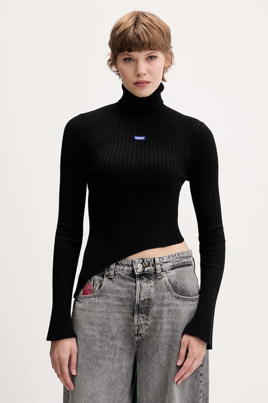 Hugo Blue sweter damski kolor czarny lekki z golfem 50548163