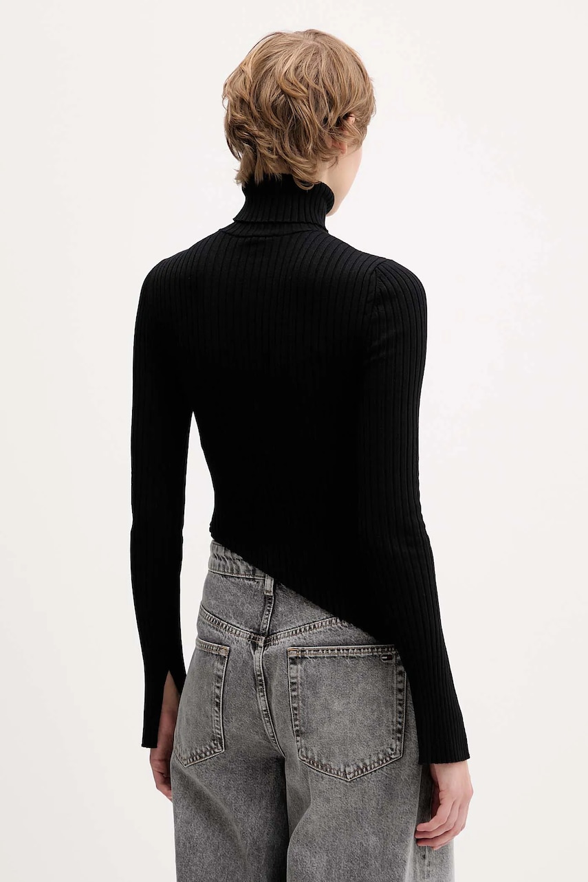 - Dopasowany fason nie krępujący ruchów. - Model z golfem. - Asymetryczna dolna krawędź. - Prążkowana struktura materiału sprawia, że jest on niezwykle elastyczny i doskonale przylega do ciała. - Model z logo marki. - Długość rękawa: 66,5 cm. - Długość: 41/55 cm. - Szerokość pod pachami: 35 cm. - Wymiary podane dla rozmiaru: S.