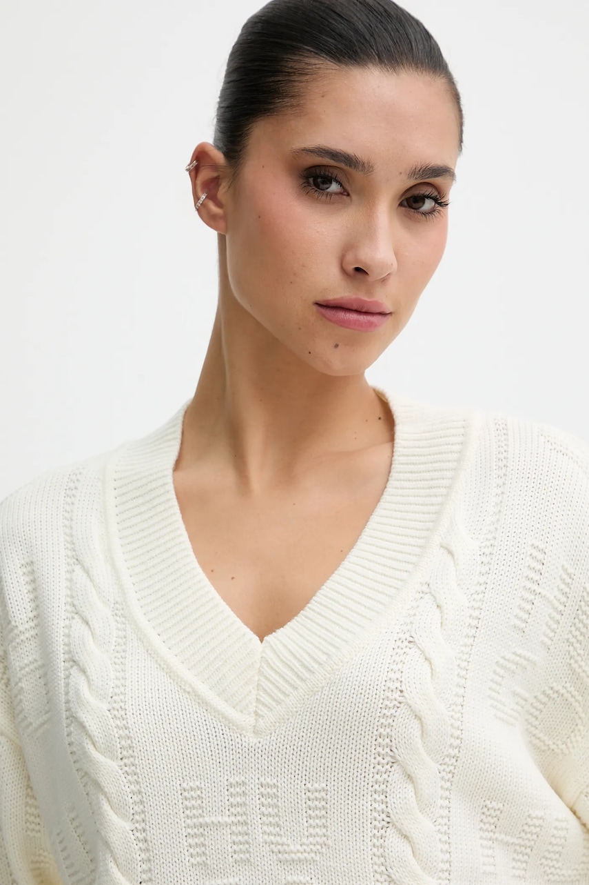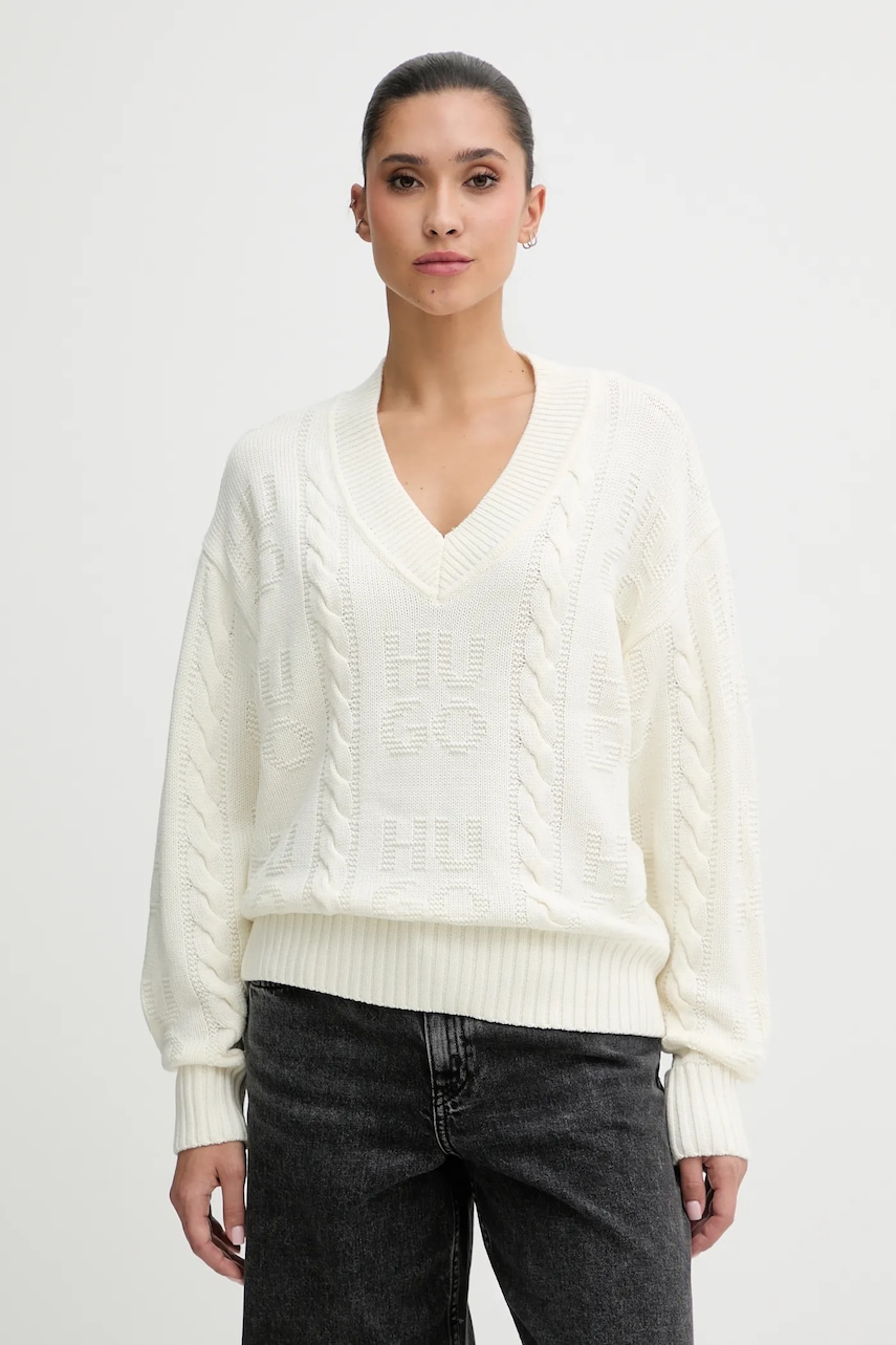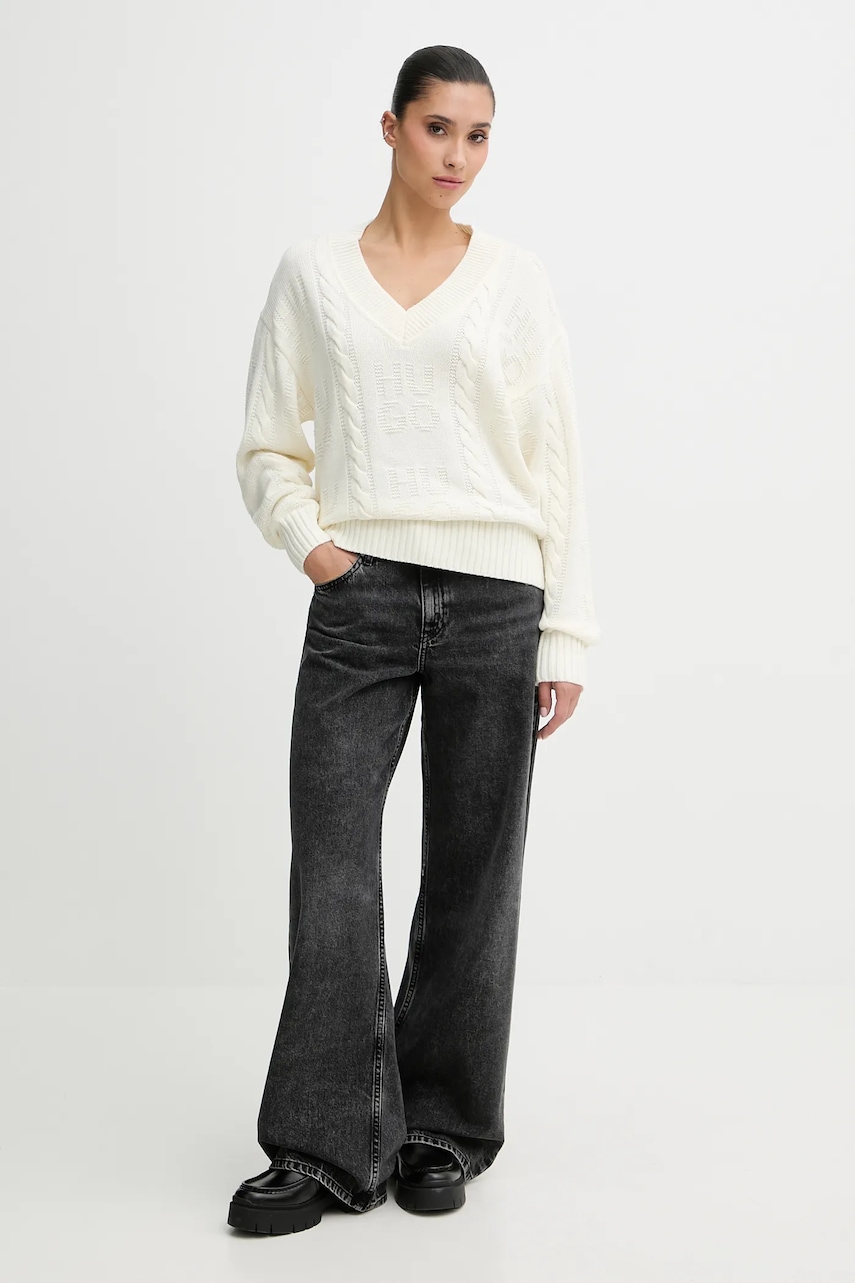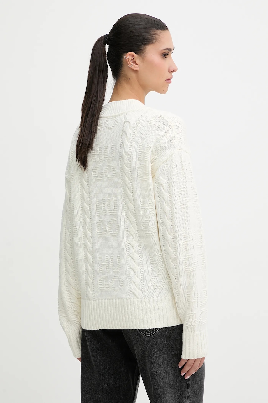 HUGO sweter z dodatkiem wełny damski kolor beżowy 50554075