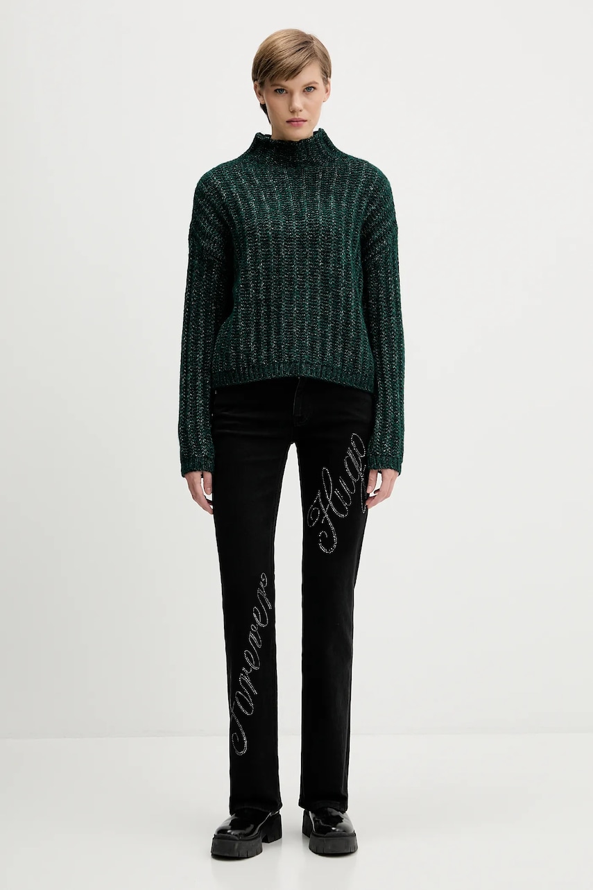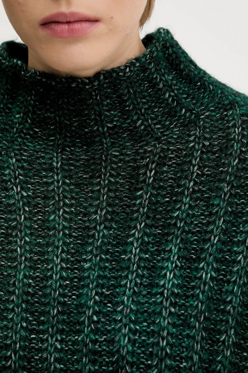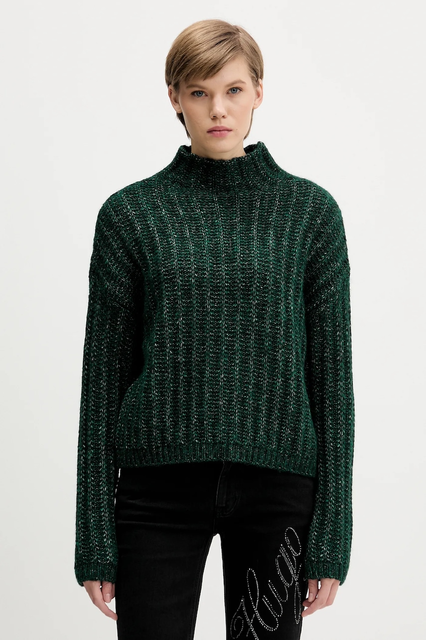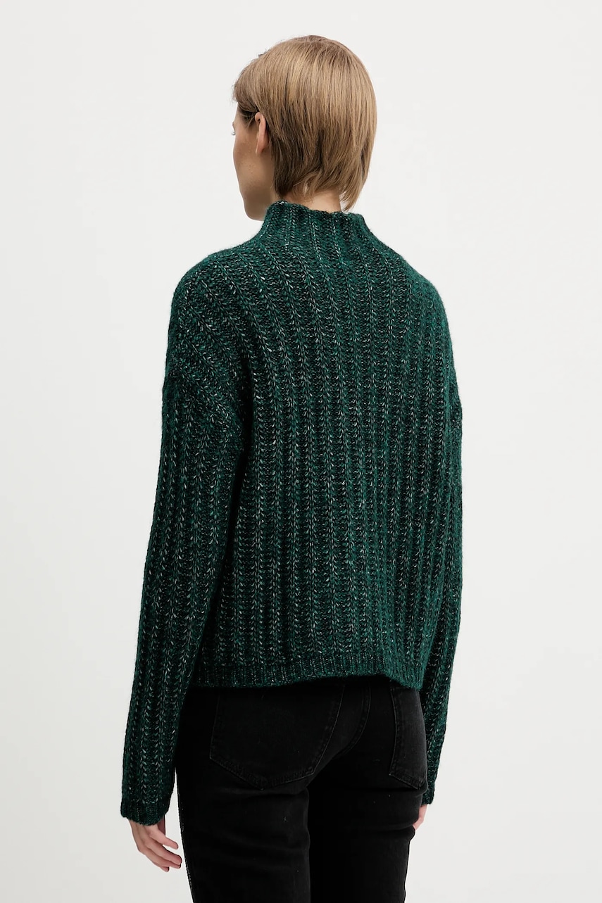 HUGO sweter z dodatkiem wełny damski kolor zielony ciepły z półgolfem 50550210