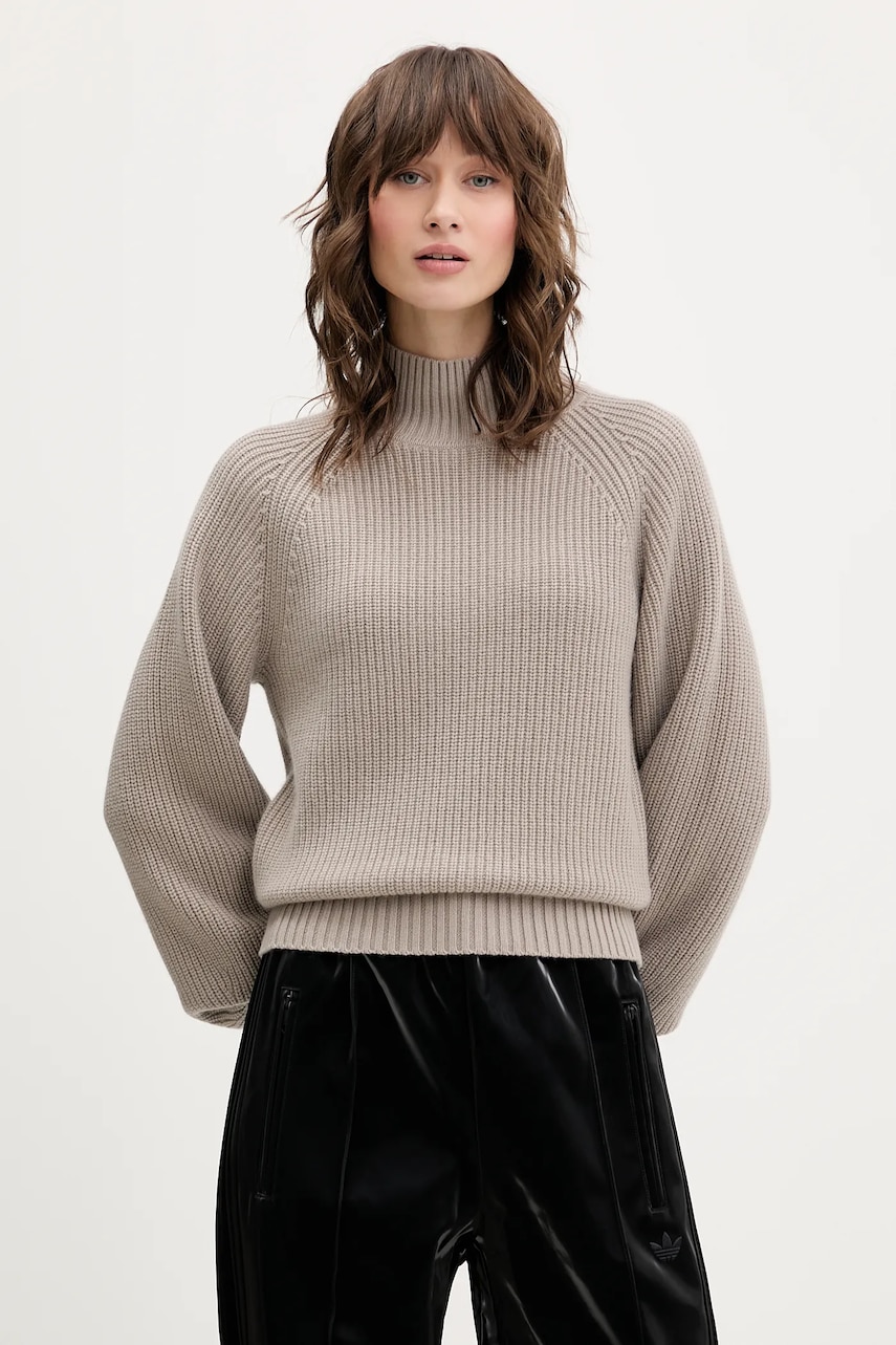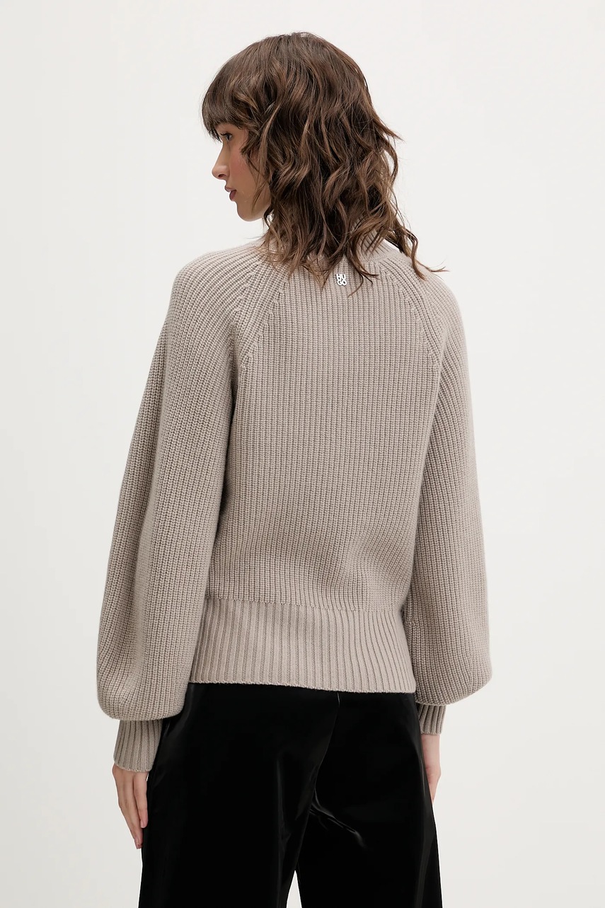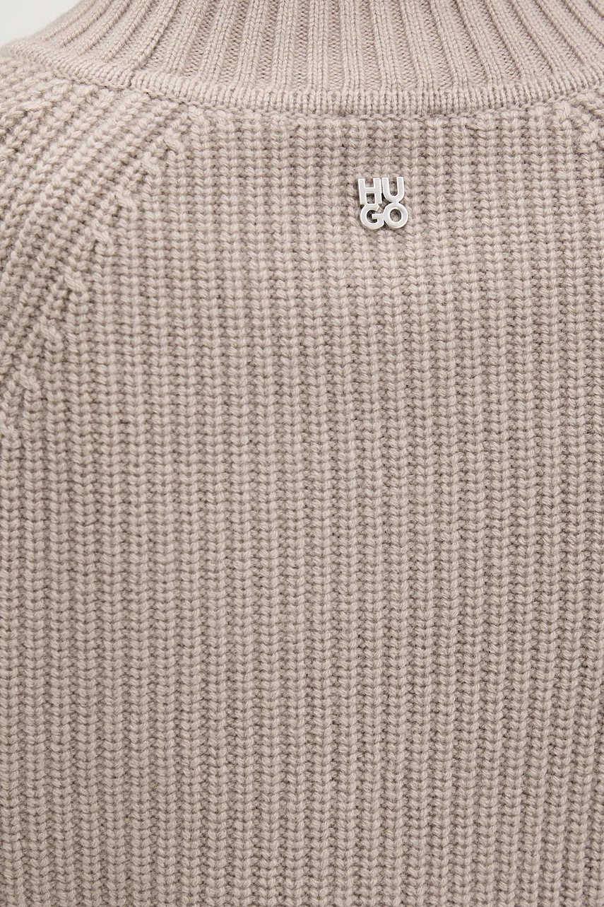 HUGO sweter z wełną damski kolor beżowy z półgolfem 50548292