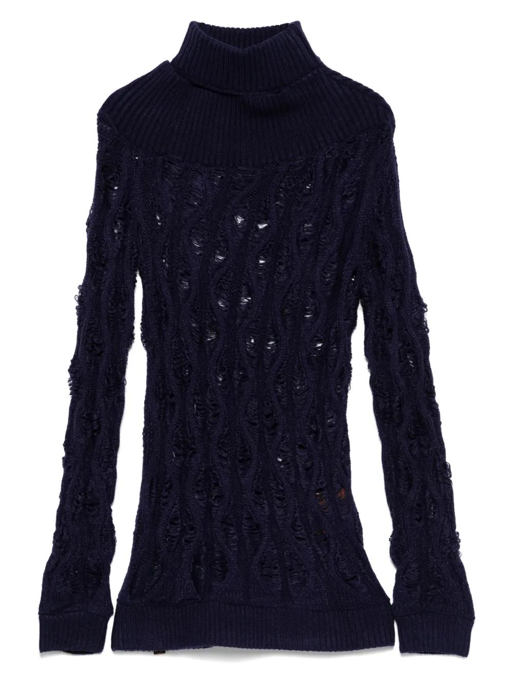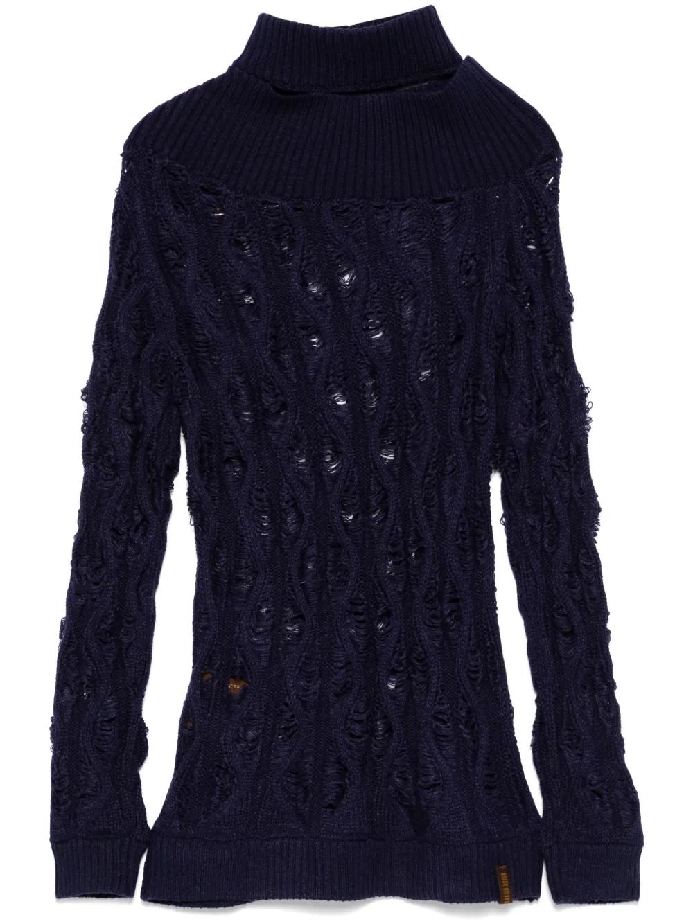 oxford blue ribbed cuffs and hem high neck long sleeves cut-out detailing