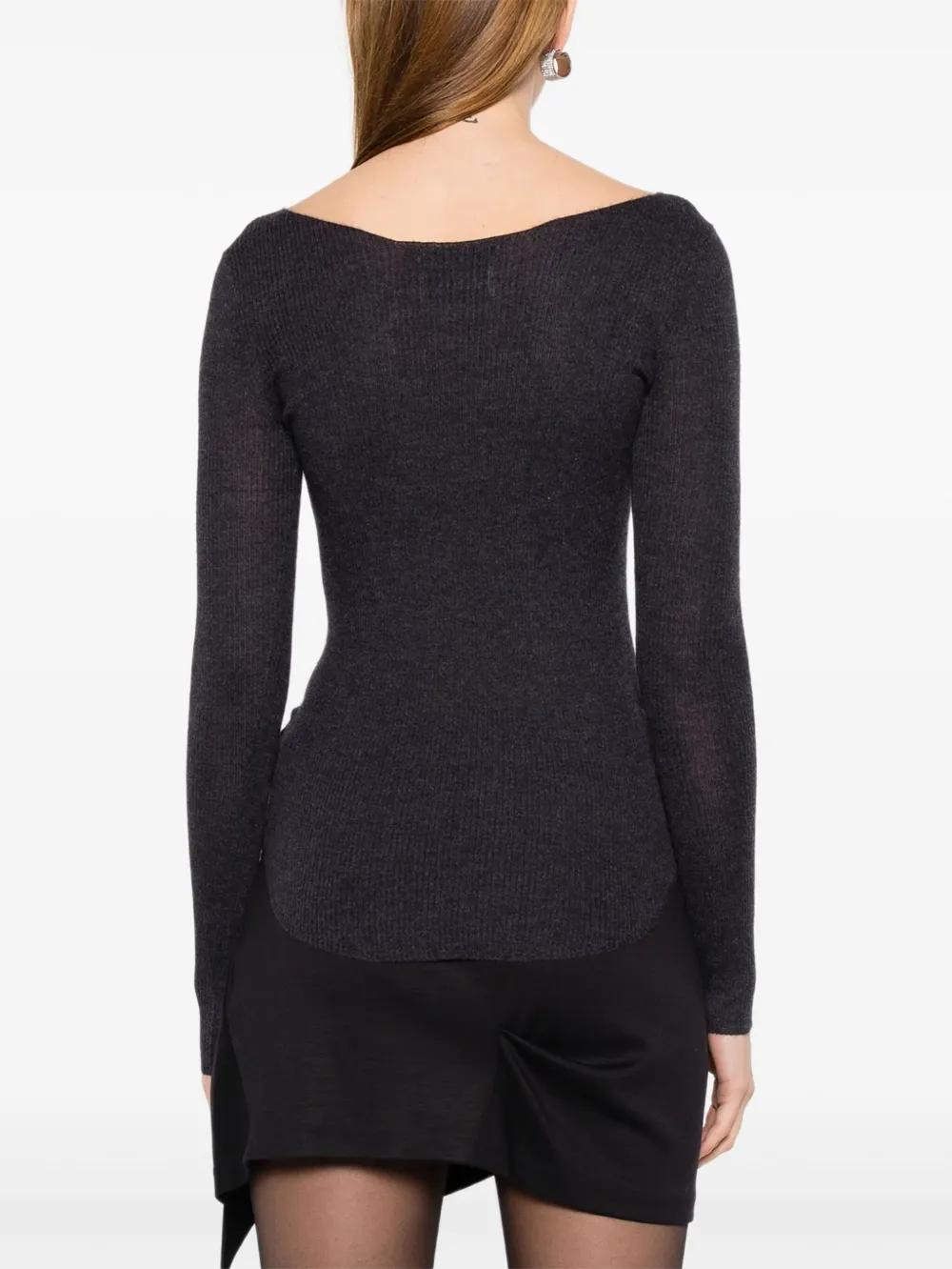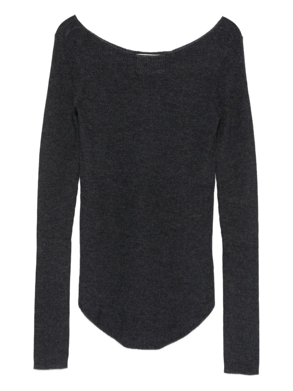 grey cashmere blend boat neck long sleeves ribbed cuffs and hem