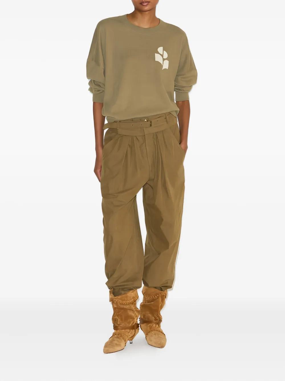 khaki round neck long sleeves ribbed hem ribbed cuffs