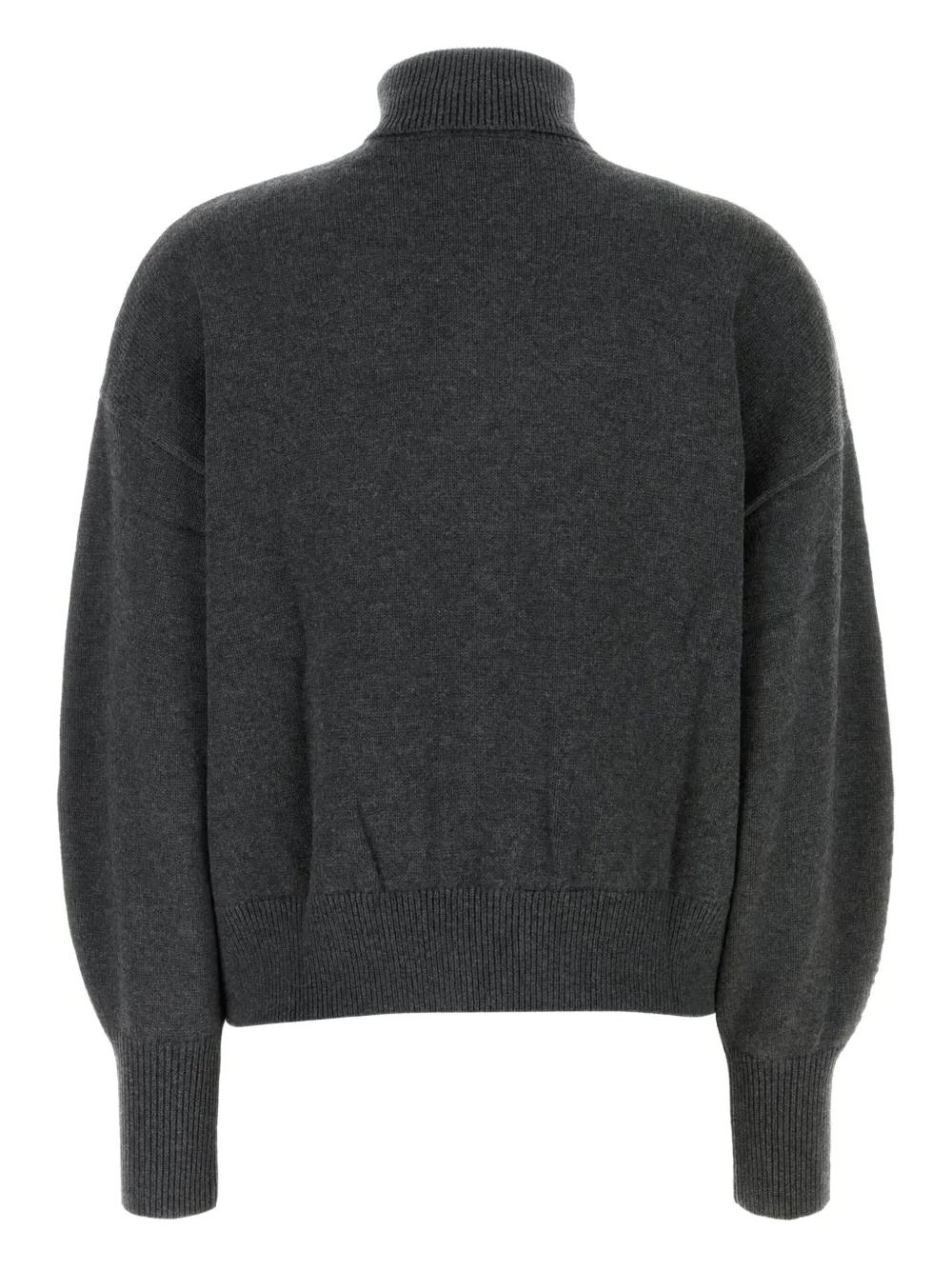 anthracite grey embroidered logo roll neck long sleeves ribbed trim