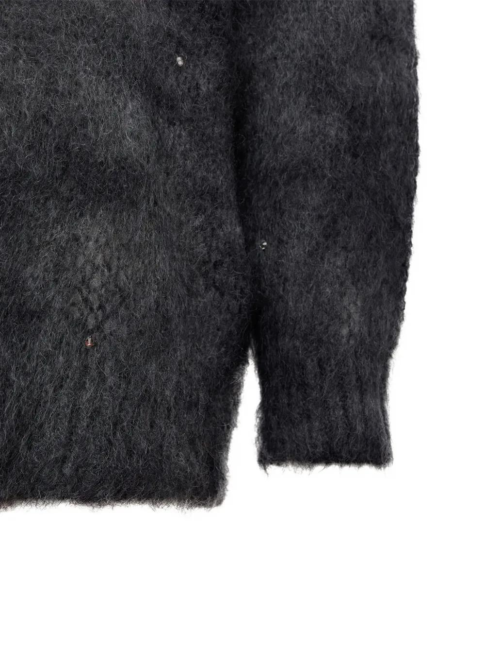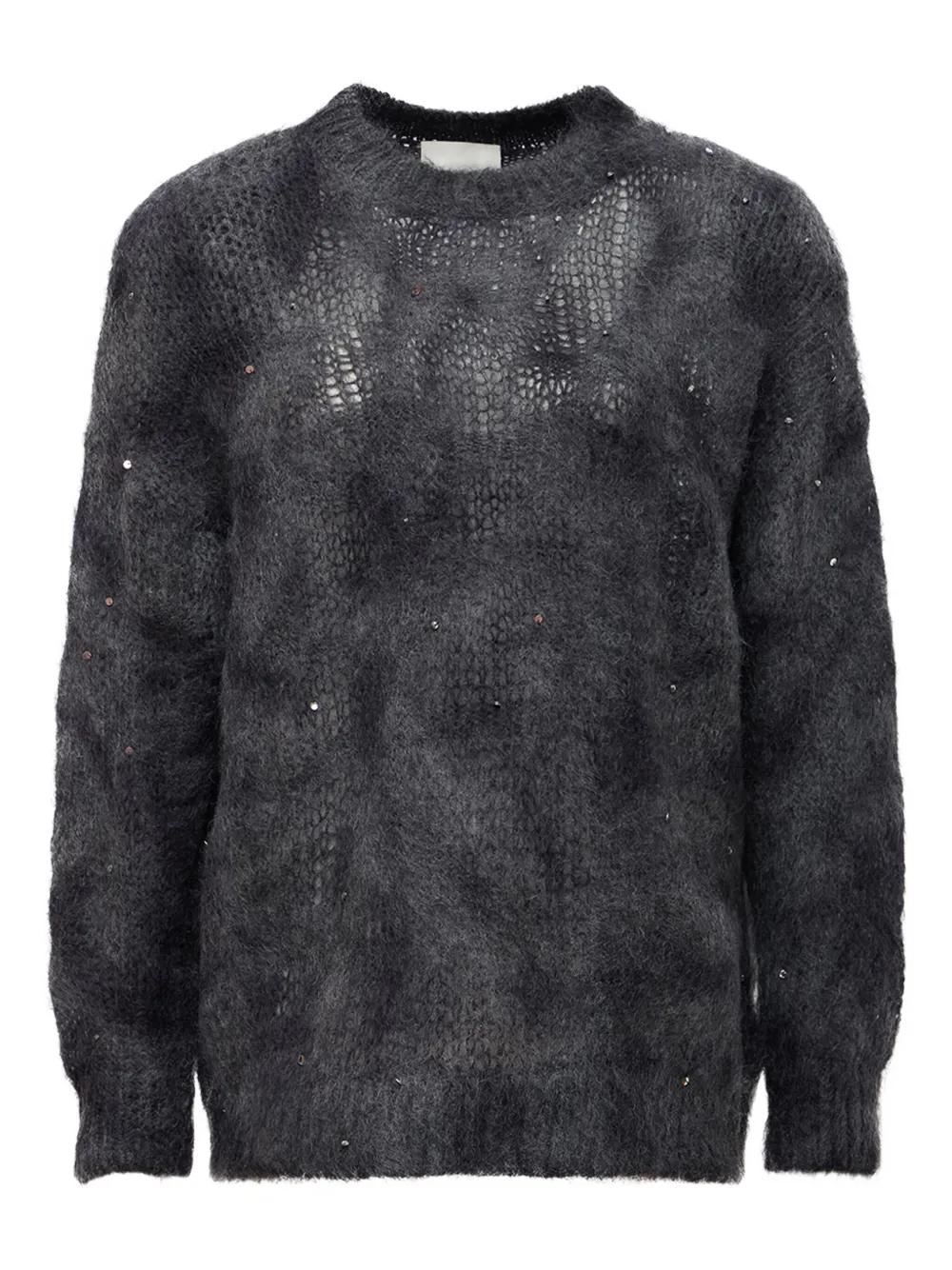 grey sequin-embellishment open-knit round-neck long-sleeves ribbed hem and cuffs