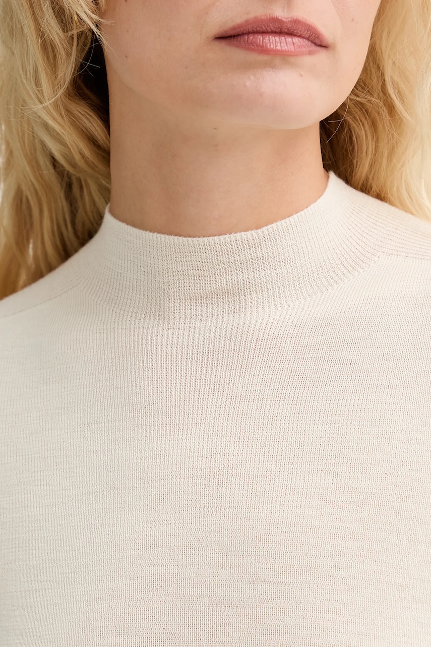 - Sweter w fasonie slim jest dopasowany do ciała i naturalnie podkreśla sylwetkę. Odpowiedni do eleganckich, jak i casualowych stylizacji. - Klasyczny, okrągły dekolt. - Długi rękaw. - Długość rękawa: 62 cm. - Długość: 59 cm. - Szerokość pod pachami: 35 cm. - Wymiary podane dla rozmiaru: S.